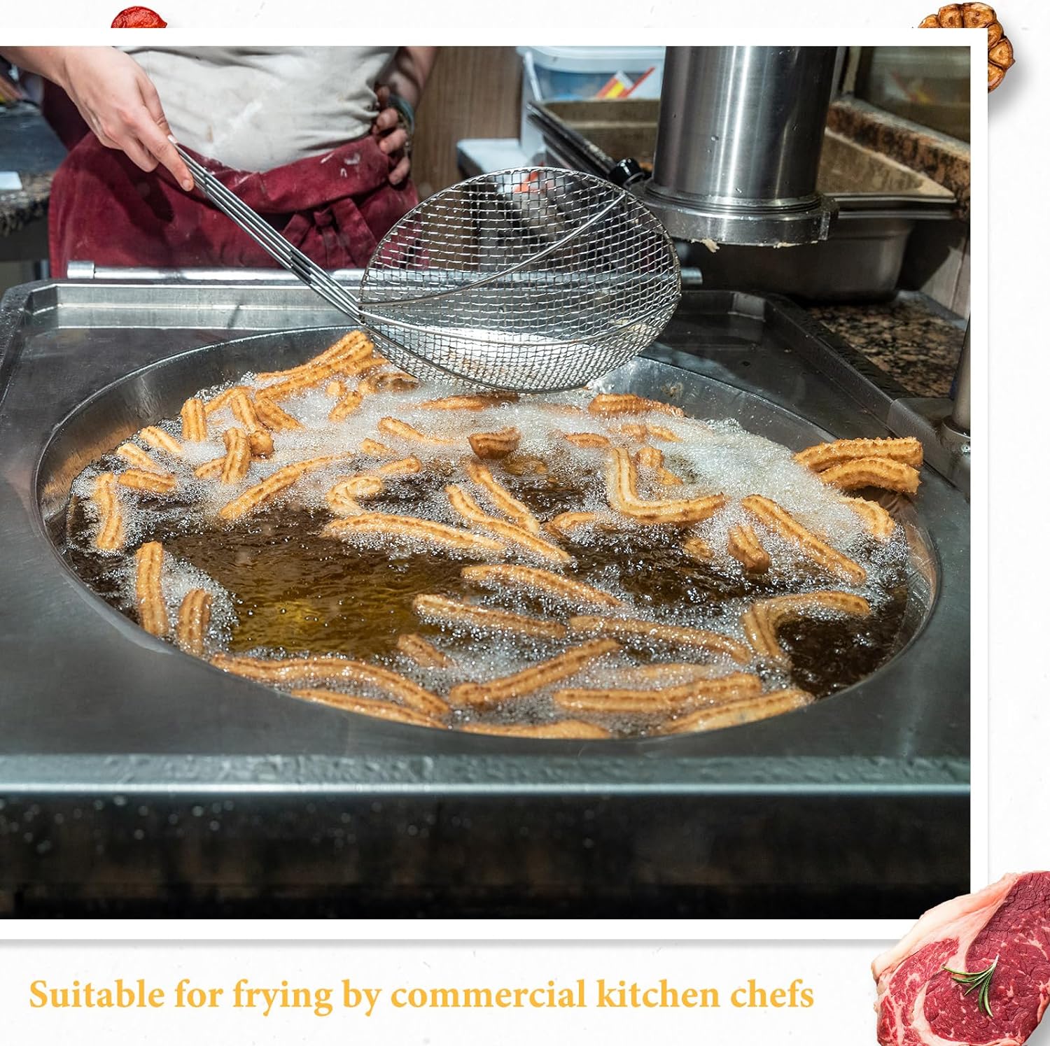 - Ideal Size for Various Uses: the fryer skimmer measures about 9 inches/ 23 cm in diameter, about 27 inches/ 68.5 cm in handle length and about 36 inches/ 91.5 cm in whole length, offers versatility in use and allowing users to reach into deep pots and fryers without the risk of burns; This makes it a handy tool for many cooking tasks