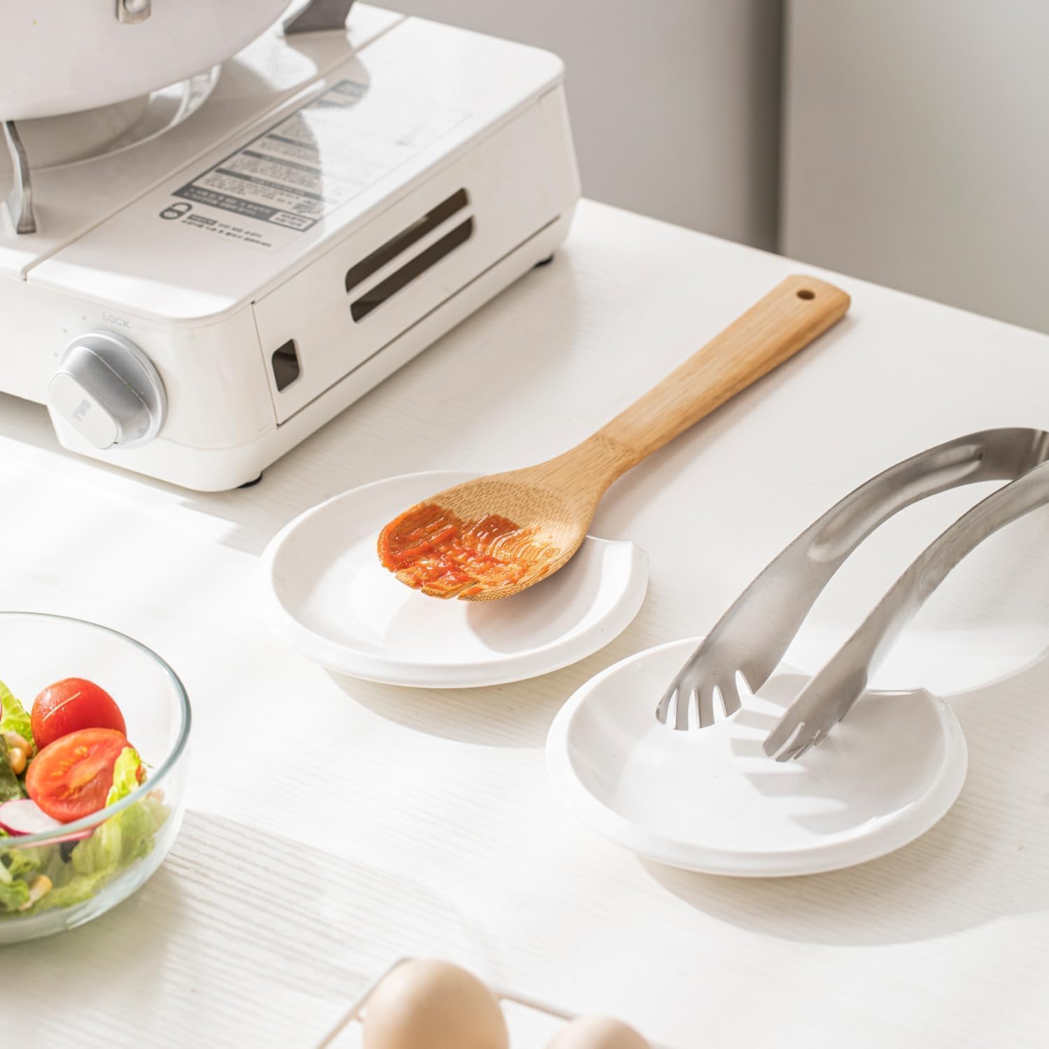 Spoon Rest, Ceramic Ladle Rest for Stove Top, 5.5 Inches Spoon Holder for Kitchen Counter Porcelain, Kitchen Utensils Accessories, Set of 4, White