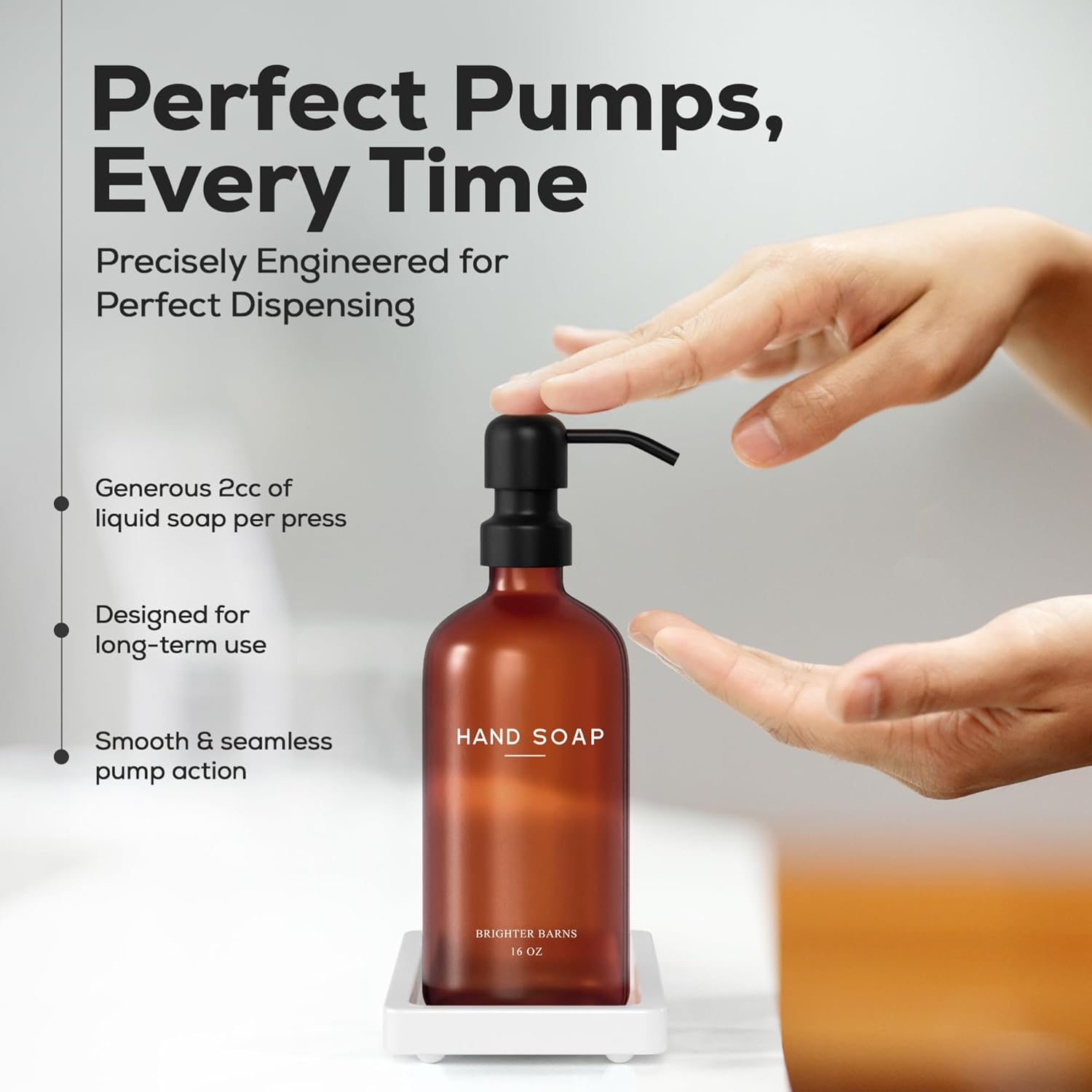 - AMERICAN DESIGN, UNCOMPROMISING QUALITY - Crafted with meticulous attention to detail, our aesthetic glass soap dispenser with pump set features 2 robust 16oz glass bottles, corrosion-proof 304G stainless steel pumps, and a stain-resistant ceramic tray. All designed in the USA to provide unbeatable quality and enduring style that you can trust.