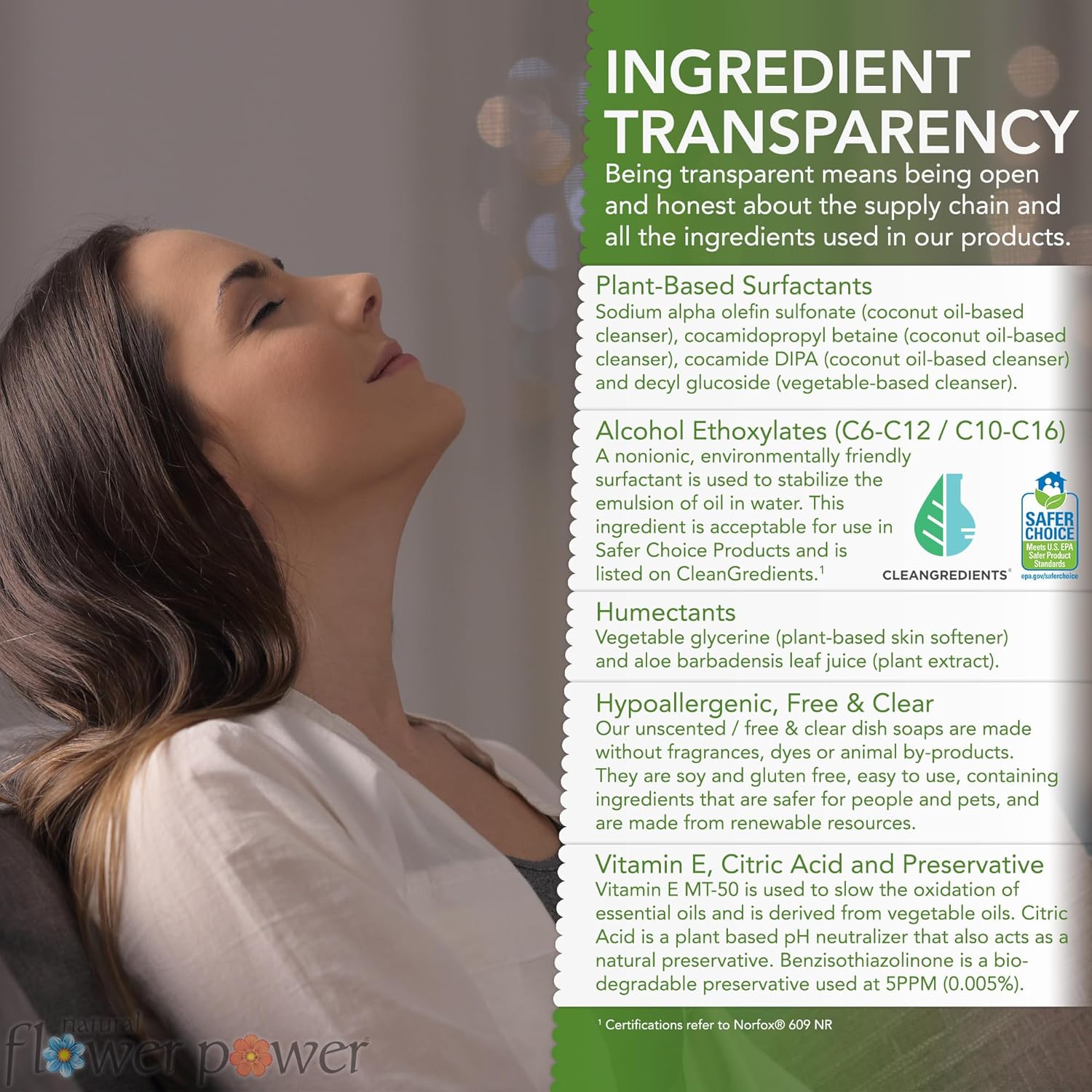 - NATURAL LIQUID DISH SOAP – Natural Flower Power’s dish soaps are made with natural, naturally derived ingredients and are scented with pure essential oils. Our dish soaps contain multiple gentle plant-based cleaning agents that are formulated to work together to be extremely effective at cleaning dishes and are safer for people, pets, and the environment.