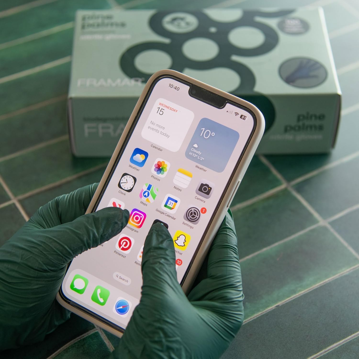 - Durable – 9 Inch long Nitrile Gloves in our rich green Color! Strong and thick enough to stretch without tearing, pinching, smelling, sticking, leaving residue or having nails poke through. These gorgeous, evergreen gloves are made with 100% biodegradable nitrile material, making them an eco-friendly alternative.