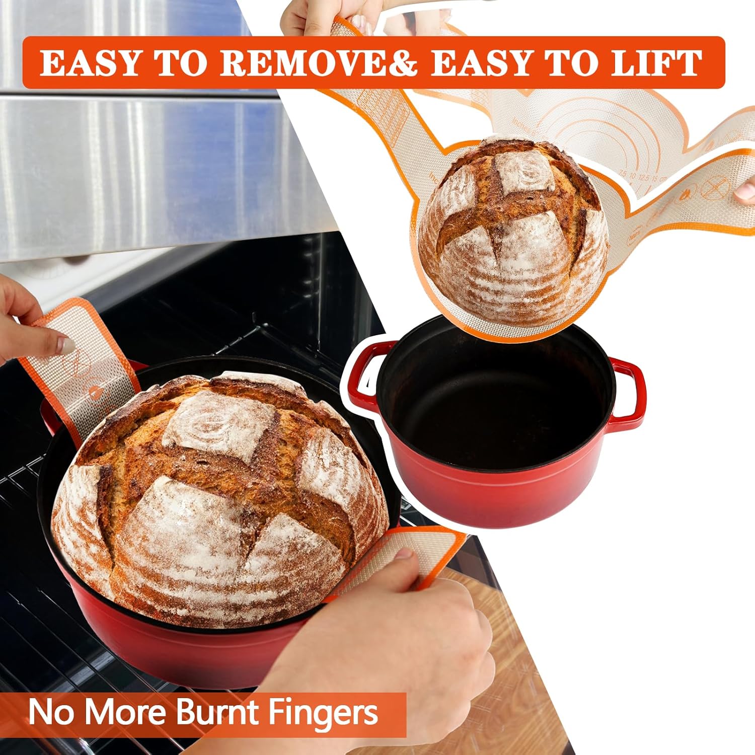 UBeesize Thickened Silicone Bread Sling, Reusable Sourdough Bread Baking Mat For Dutch Oven 2-8 Qrt, Non-Stick, Easy To Clean, With Extra Long Handles Bread Baking Sheet Liner