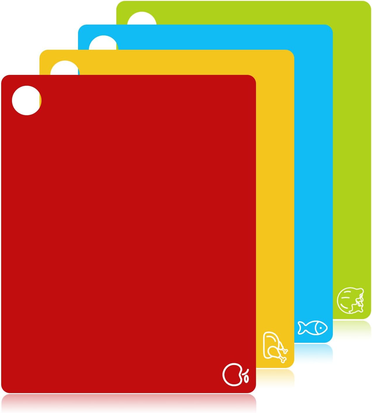 GoodLuck 4 Pieces Flexible Cutting Boards with Hanging Hole, BPA Free Plastic Cutting Boards for Kitchen, Non Slip Cutting Mat for Meat and Vegetables