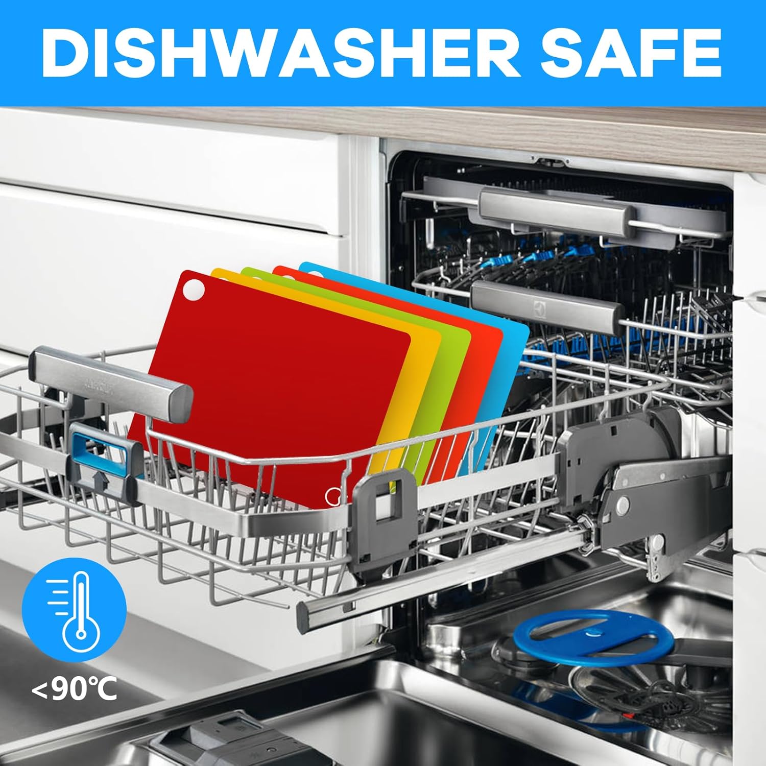 - Easy to Clean - The cutting boards for kitchen dishwasher safe are made of food-grade material and are BPA-free. After use, it can be washed in the dishwasher for future use. Note: Ensure the dishwasher temperature is kept below 194°F (90°C).