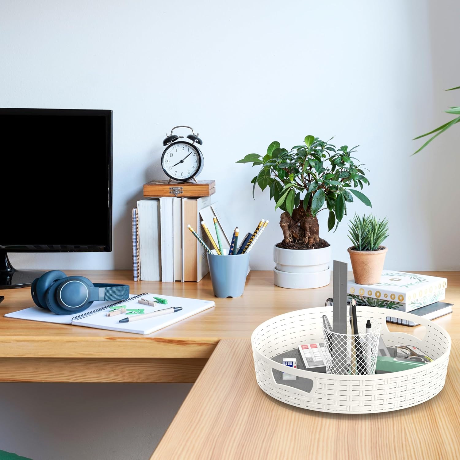 Simple Houseware 12-Inch Non-Skid Storage Lazy Susan Multifunctional Organizer, White
