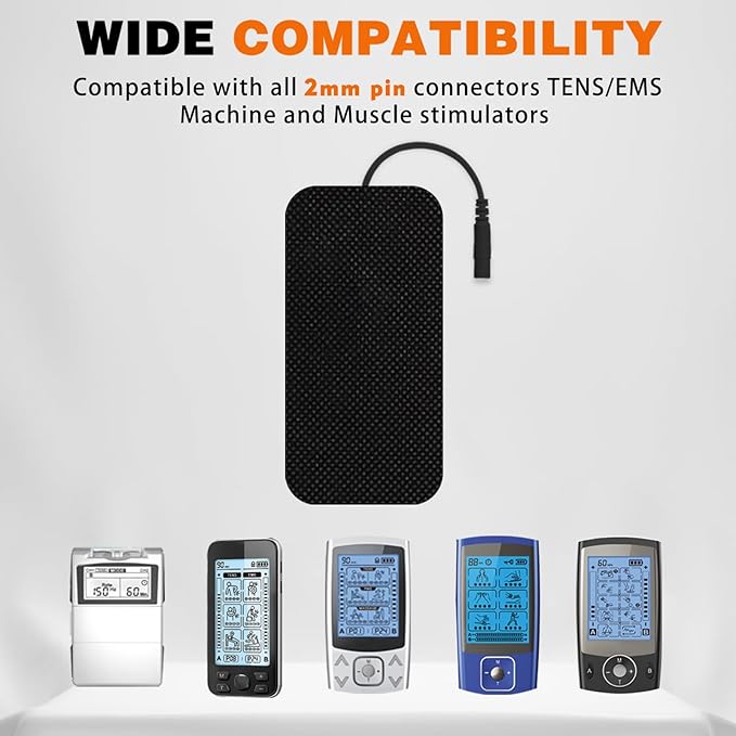 • Universal Compatibility: Standard 2mm pin-on connector Tens Unit Electrode Pads are classic and commonly used in medical area, which makes it easier for you to find compatible TENS unit muscle stimulator & accessories It is compatible with the popular TENS / EMS unit such as AUVON TENS unit, United Surgical TENS 7000, HeathmateForever YK15AB, Santamedical LFM-110 truMedic TENS machine, Easy@home TENS Our electrode pads are also suitable for various other brands like Nursal Zynex Medical