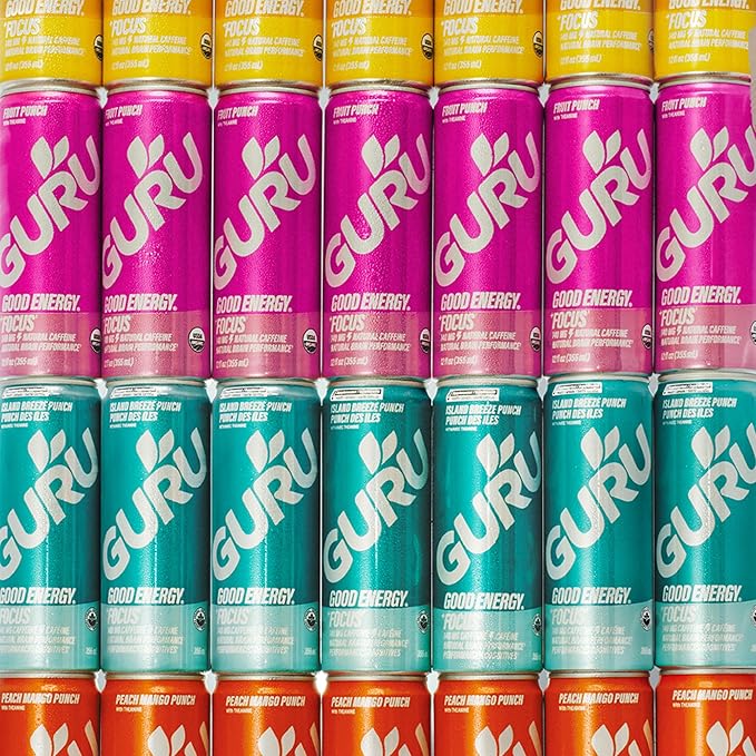 • SPREAD FEEL GOOD ENERGY: Organic energy drinks crafts with plant based ingredients. GURU is about helping you blaze new trails, reach new heights, and find your true nature. Help us share good energy, inspire communities and be a GURU to others!