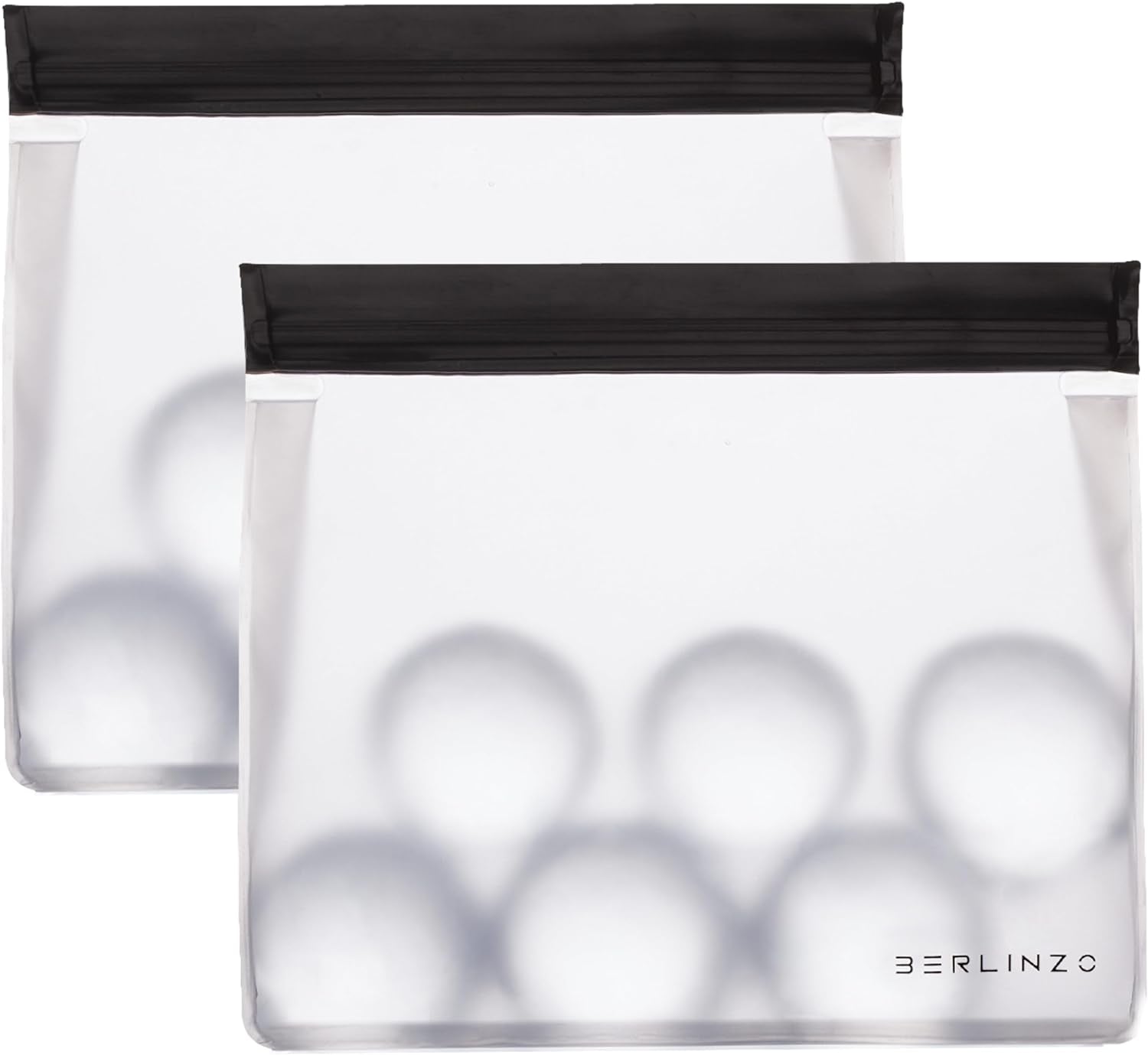 BERLINZO Reusable Ice Storage Bag - Freezer Safe Leak Proof Silicone and Plastic-Free Lunch Bag for Ice and Food Storage - BPA-Free - 2 Pack