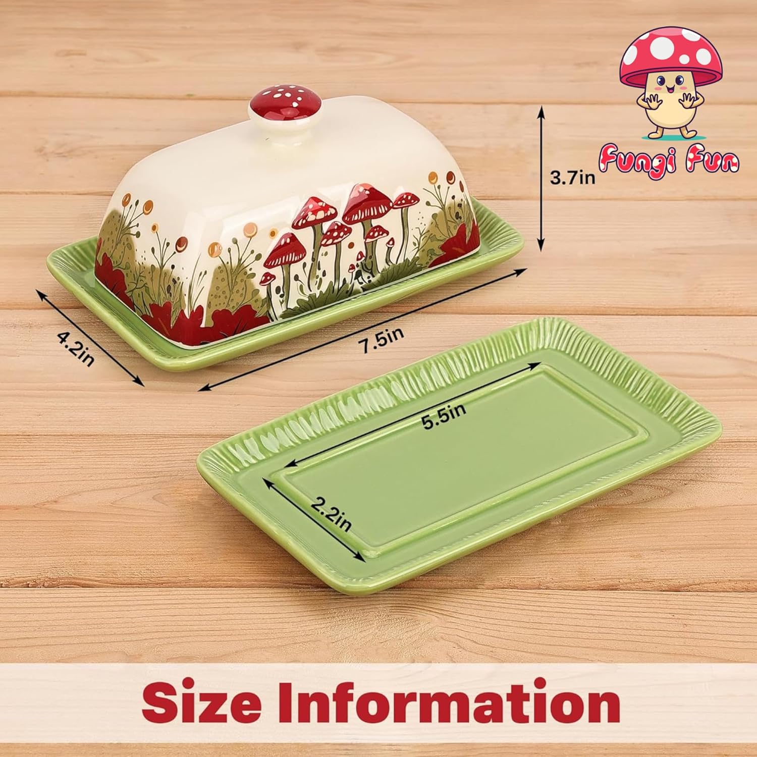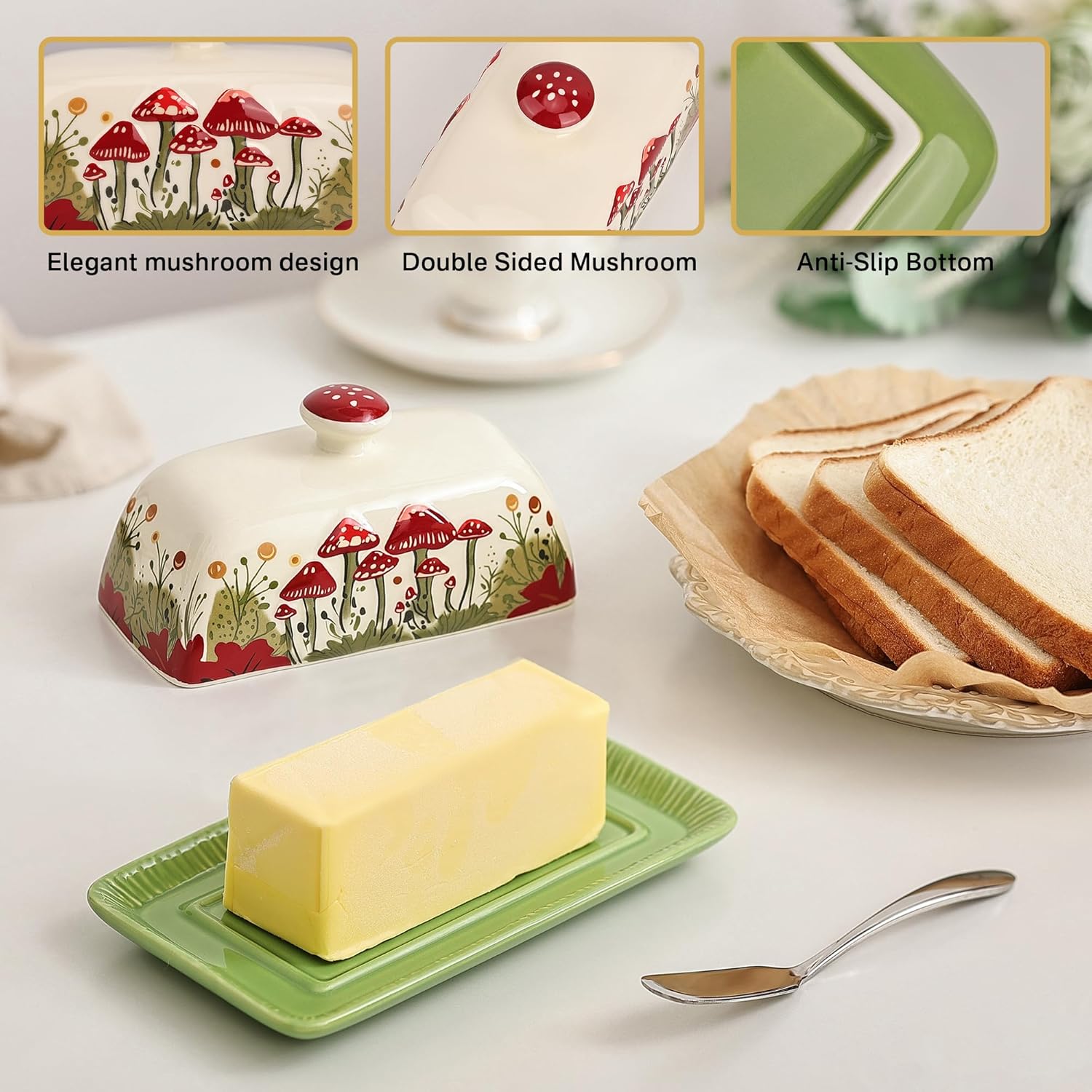 - Artisan Crafted Elegance: Expertly molded from durable stoneware, each butter keeper showcases unique artisan details with a smooth glaze finish. The lid fits snugly to preserve freshness, while its vintage-inspired mushroom design adds timeless elegance to your table.