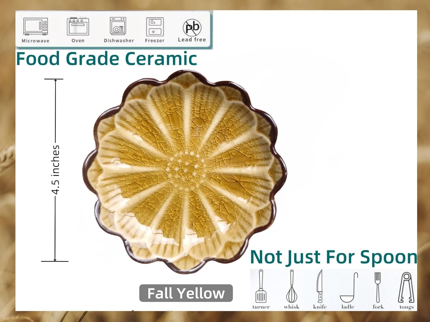 Ceramic Spoon Rest for Stove Top, Flower Cute Spoon Rest for Kitchen Counter, Cooking Spoon Holder for Kitchen Counter, Utensil Rest Spatula Rest Ladle Holder Tong Rest, 1 PC (Ice Cracks, Fall yellow)