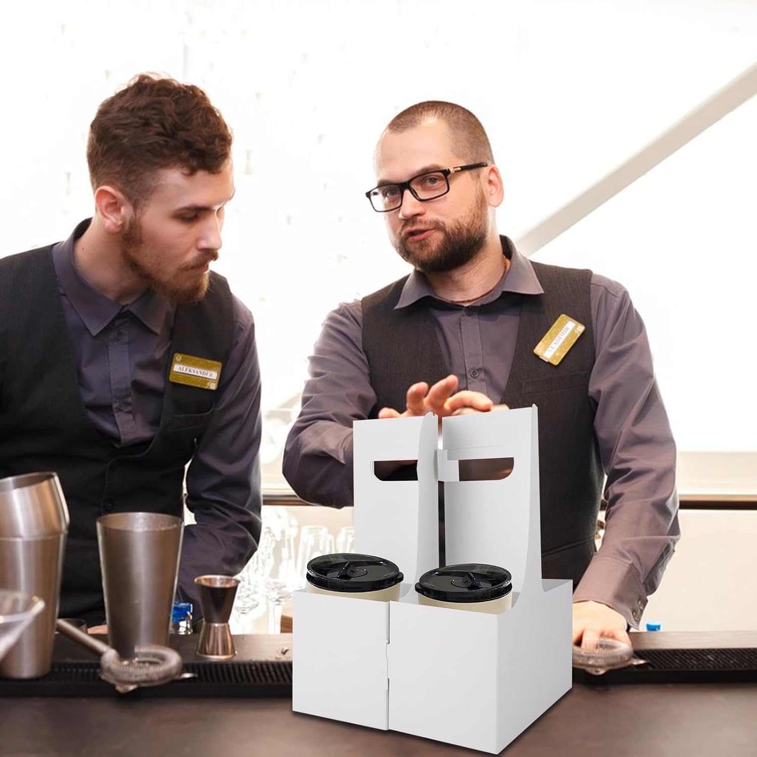 - Wide Application: The paperboard drink caddy is suitable for fixing and transporting a wide range of drinks such as coffee, juice, milkshake and so on. Also, the cup carrier with handle can be used in cafes, restaurants coffee shops, etc. as a package that can hold multiple drinks