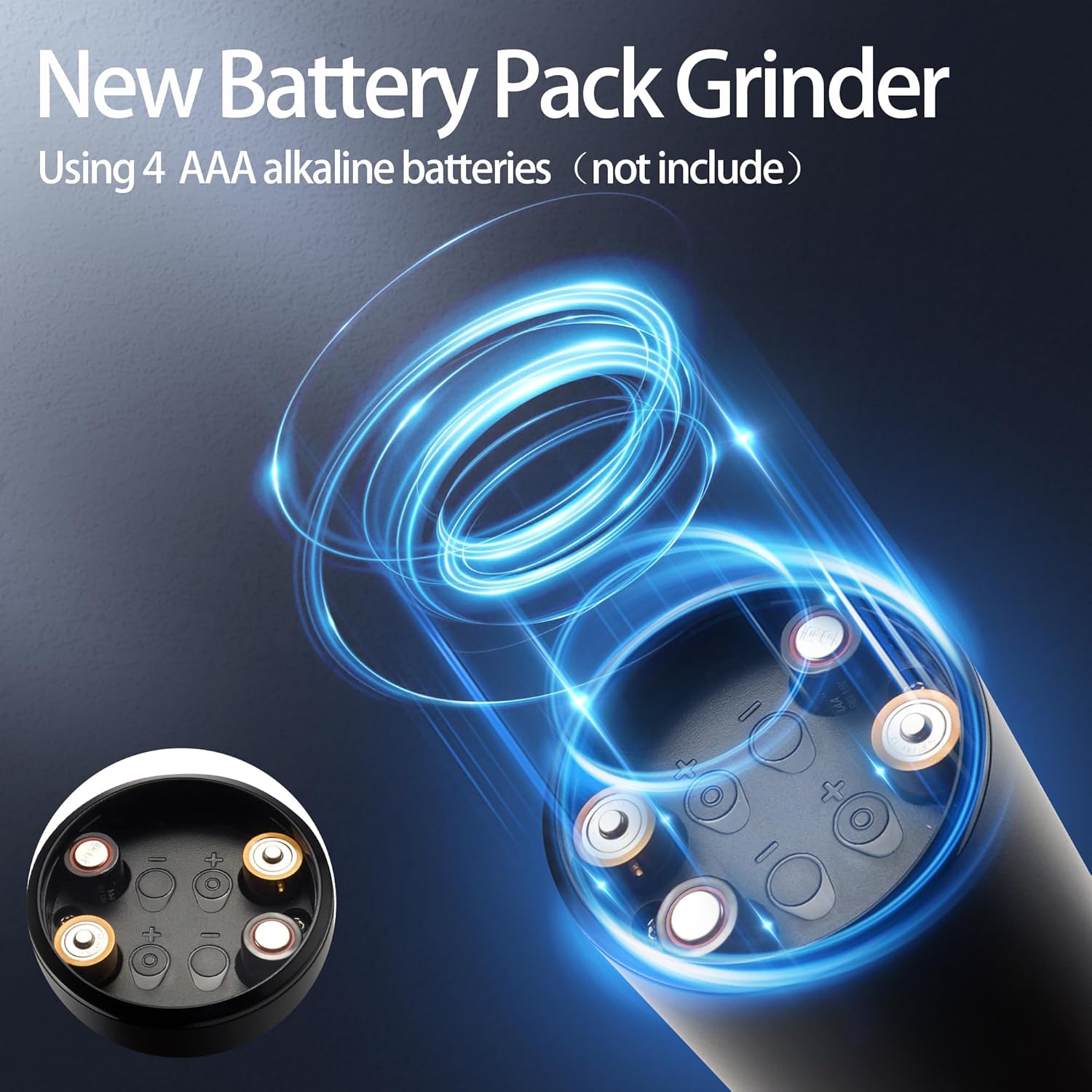 - 【WIDE RANGE OF USES】Can be used for pepper, salt and spices. This electric salt pepper grinder set is suitable for all types of spices. Ideal as a seasoner for pepper, salt, pepper, cloves, herbs and spice mixes. Ideal for kitchens, outdoor barbecues, and restaurants.