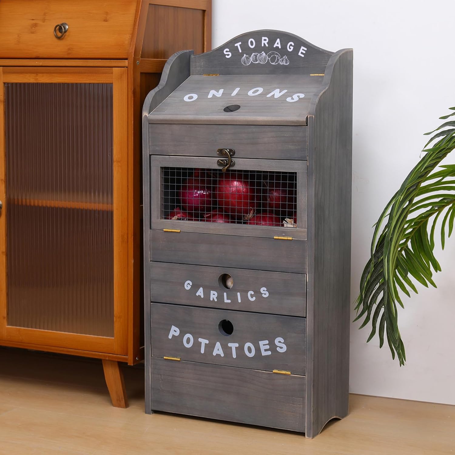 - All-in-One Storage Solution: Combining the convenience of a potato bin, onion box, and garlic keeper, this versatile organizer is the ultimate kitchen companion for any home cook