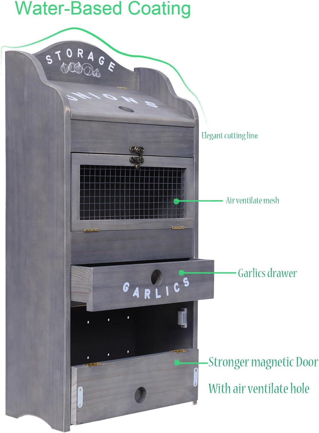 ARTAWEIN Potato Storage Bin Wall-mountable Potato Box with Lid Rustic and Garlic Drawer Onion Organizer with Grocery Section Decorative Vegetable Organization Cabinet for Kitchen