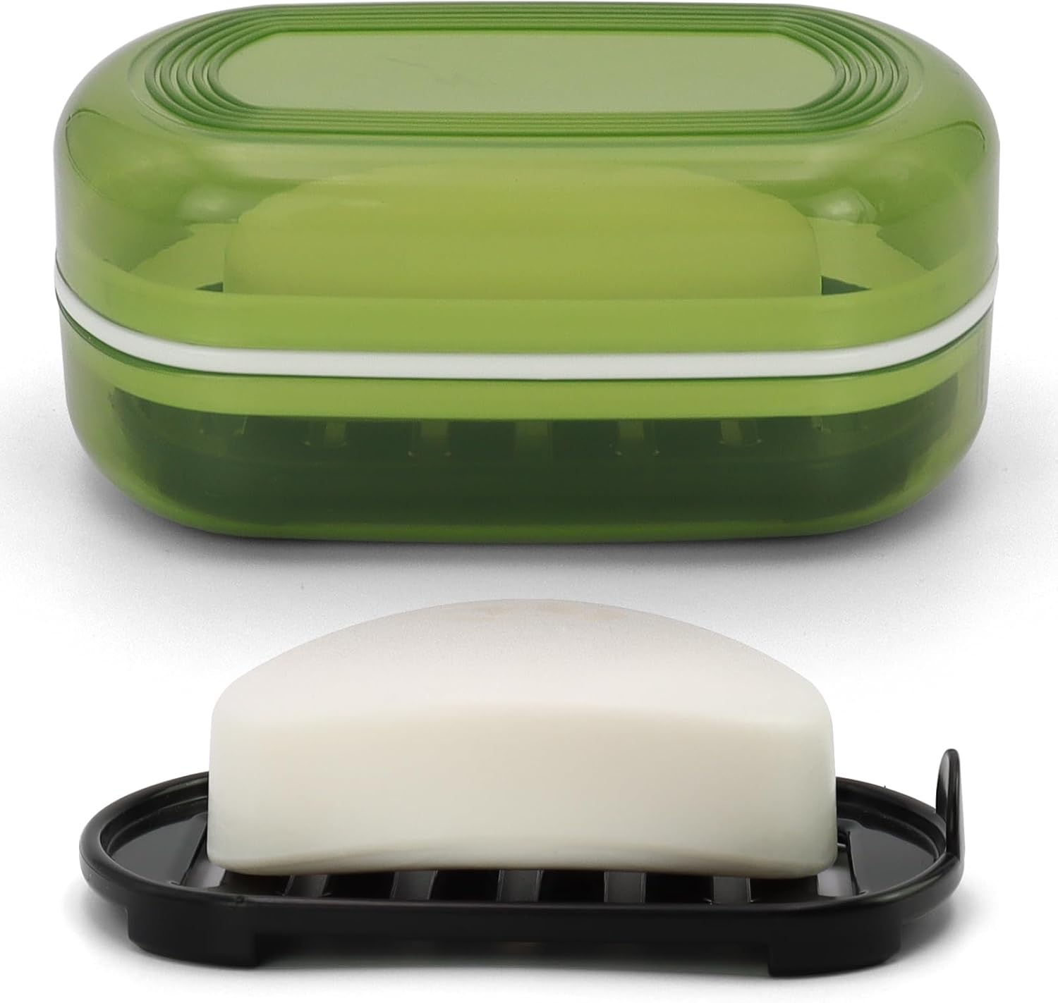 Soap Holder - Portable Travel Soap Case with Draining Layer - Perfect for Bathroom, Gym, Camping, Traveling (Green)
