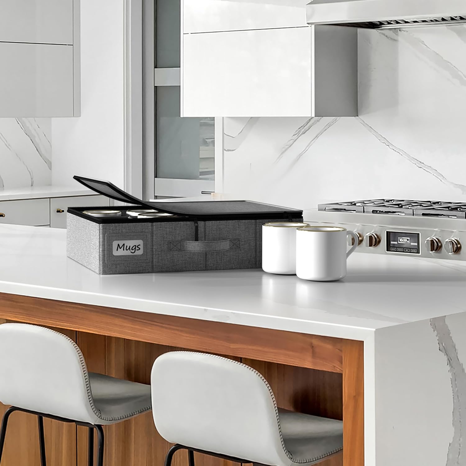 - Coffee Mug and Glass Organizer Storage: Our coffee mug storage box with dividers is designed for coffee enthusiasts, offering a convenient solution for organizing and protecting your coffee mugs and glassware - Holds up to 12 of your favorite mugs - Features label windows, handles, and dividers