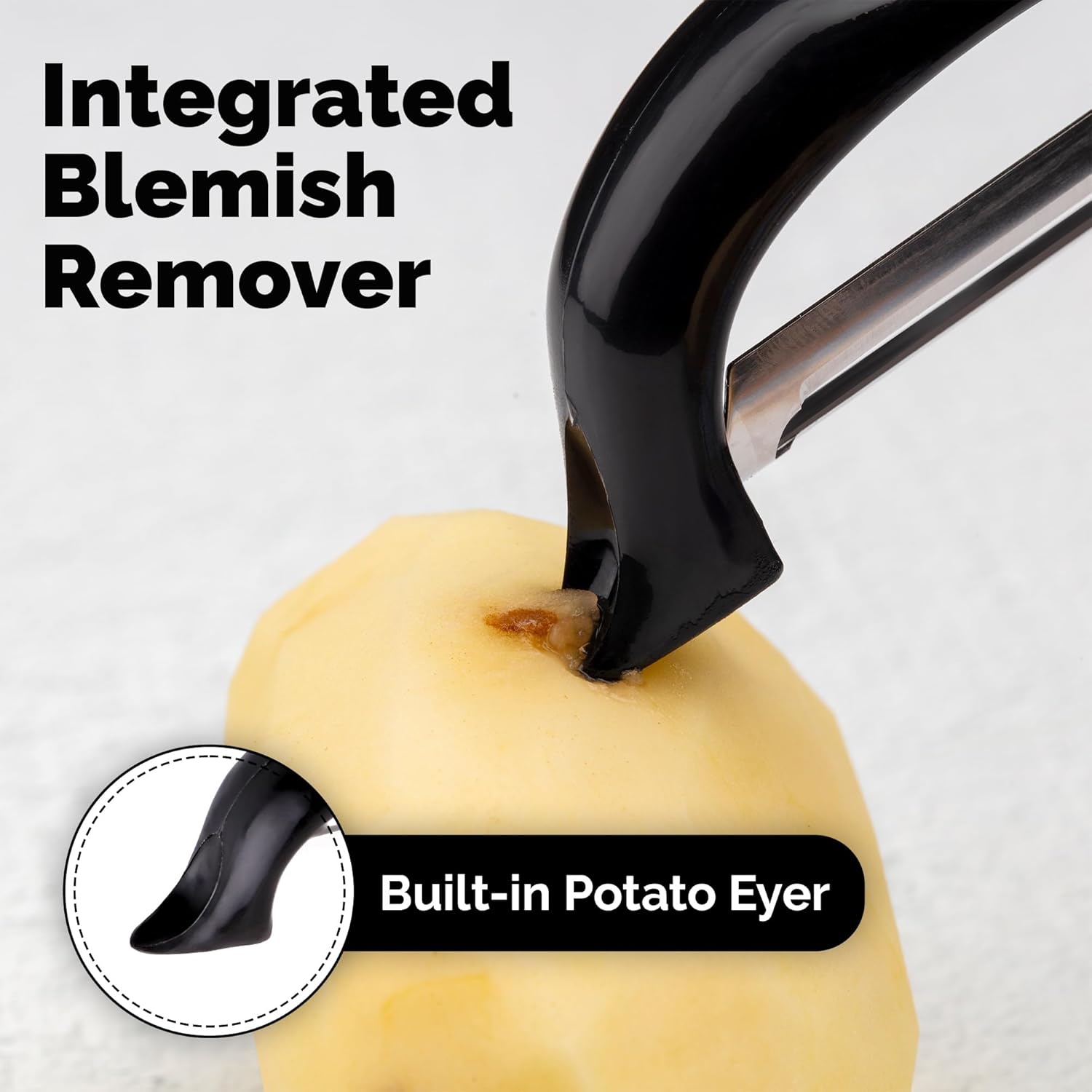 - PEELING MADE EASY: Smooth and effortless peeling starts with our vegetable peeler! With a swivel design, this peeler is made with dual sharp blades that glide through the surface of fruits and vegetables. The built-in blemish remover further adds to your convenience.