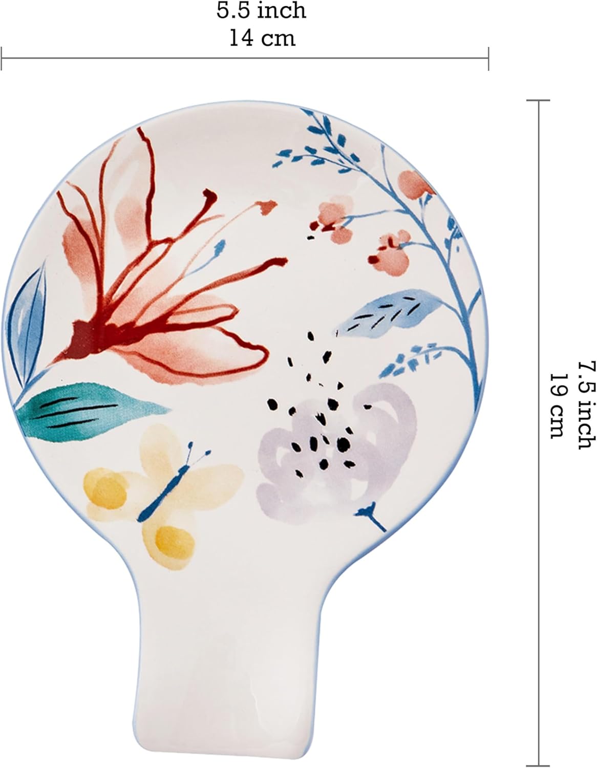 Bico Blossom Symphony Spoon Rest for Stove Top, Ceramic Spoon Holder for Kitchen Counter, Easy to Clean Coffee Spoon Rest Dishwasher Safe, Kitchen Cooking Utensil Rest for Ladles Spatula