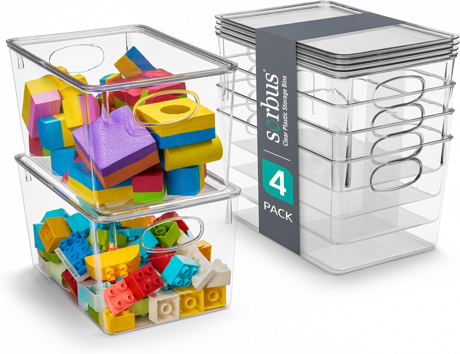 - Clear Containers for Organizing: The clear design of these Sorbus Clear Plastic Storage Bins with Lids allows you to view what’s stored inside effortlessly - Access and restock your essentials in seconds - Save time and hassle searching through clutter - Group Toys together - Grab and go, easy access!
