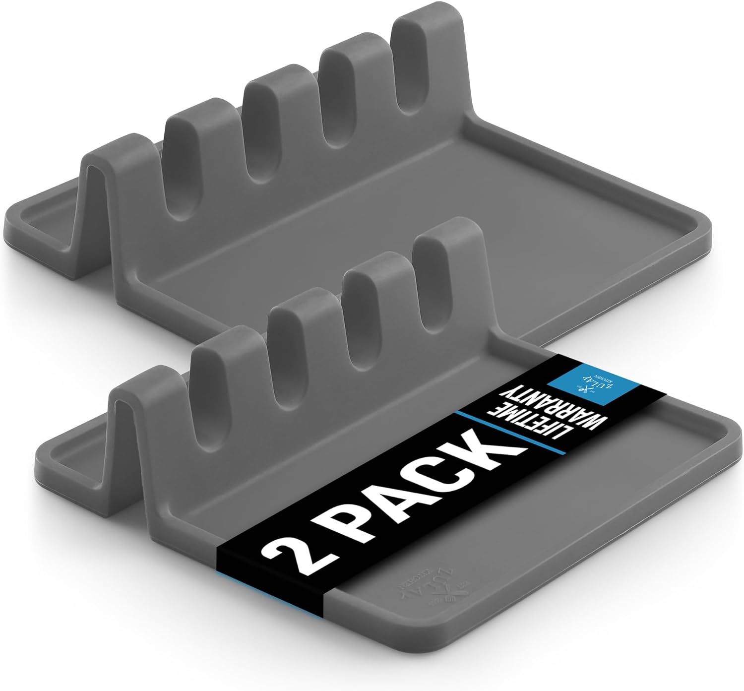 Zulay Silicone Utensil Rest - BPA-Free, Durable Spoon Rest with Drip Pad - Heat-Resistant Spoon Rest for Stove Top - Spoon Rest for Kitchen Counter - Kitchen Gadgets & Kitchen Utensils Holder - 2 Pack