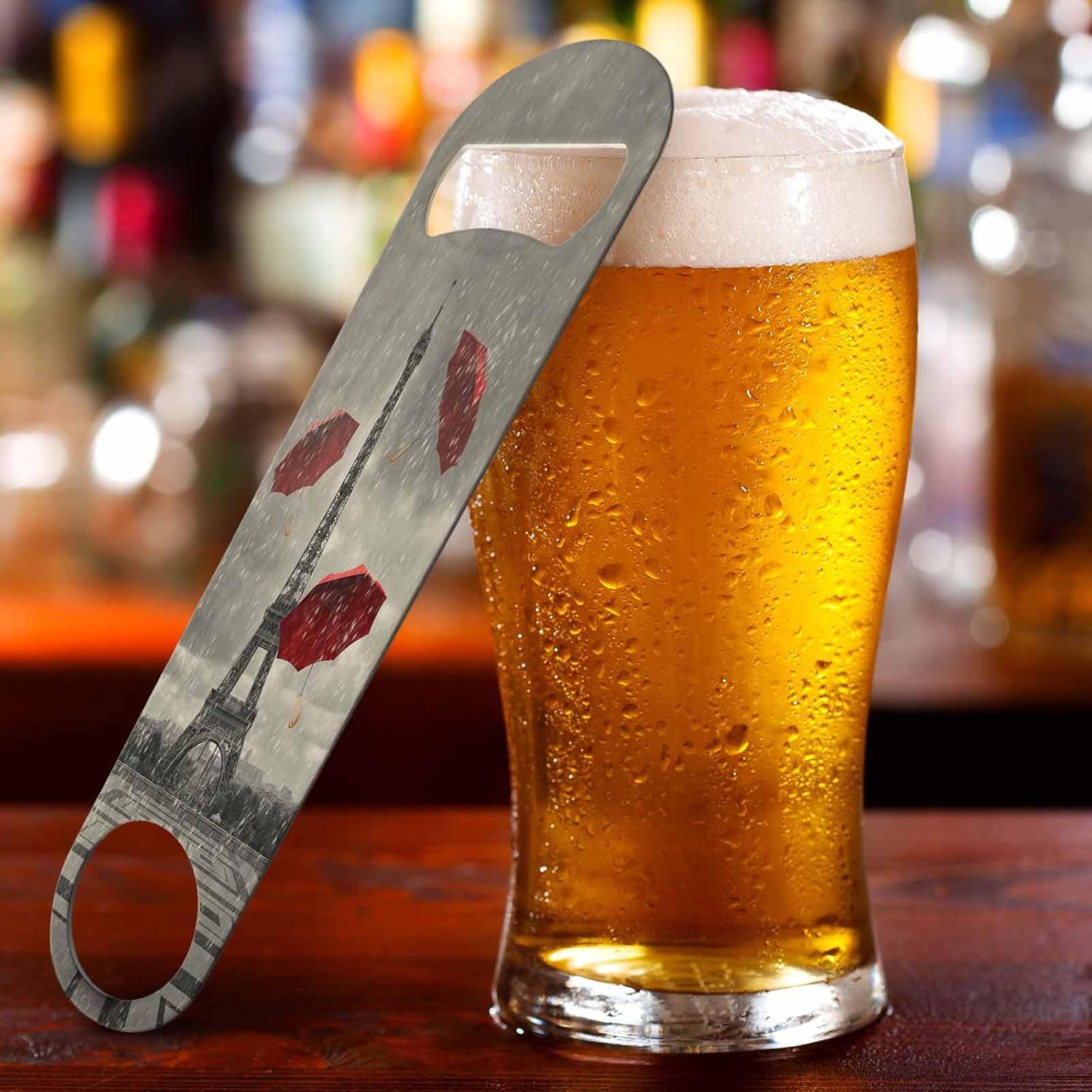Eiffel Tower Stainless Steel Bottle Opener Raining Day Red Umbrella Black and White Street Romantic Scenic Flat Beer Bottle Opener Keychain for Home Kitchen Bar Restaurant Party Birthday Gift