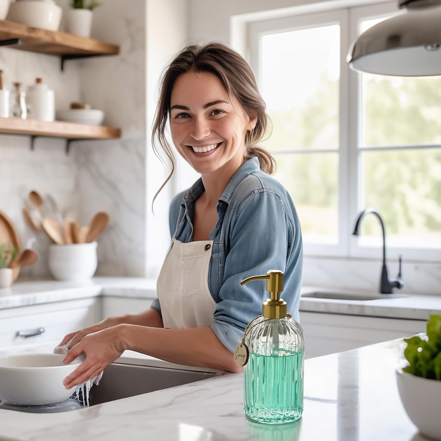 - STYLISH GLASS SOAP DISPENSER WITH STURDY PUMP: Made of Premium Clear Glass with Golden 304 Stainless Steel Pump for Long Lasting Brightness And Rust Proof.