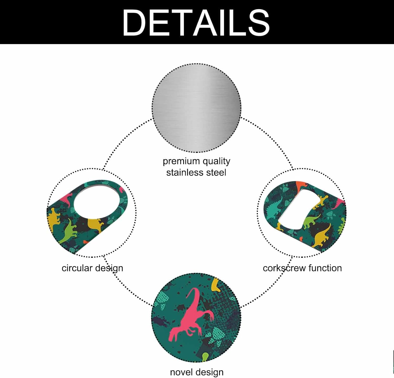 - Premium Material: Our cute dinosaur bottle opener is made of stainless steel, sturdy for long-term use.