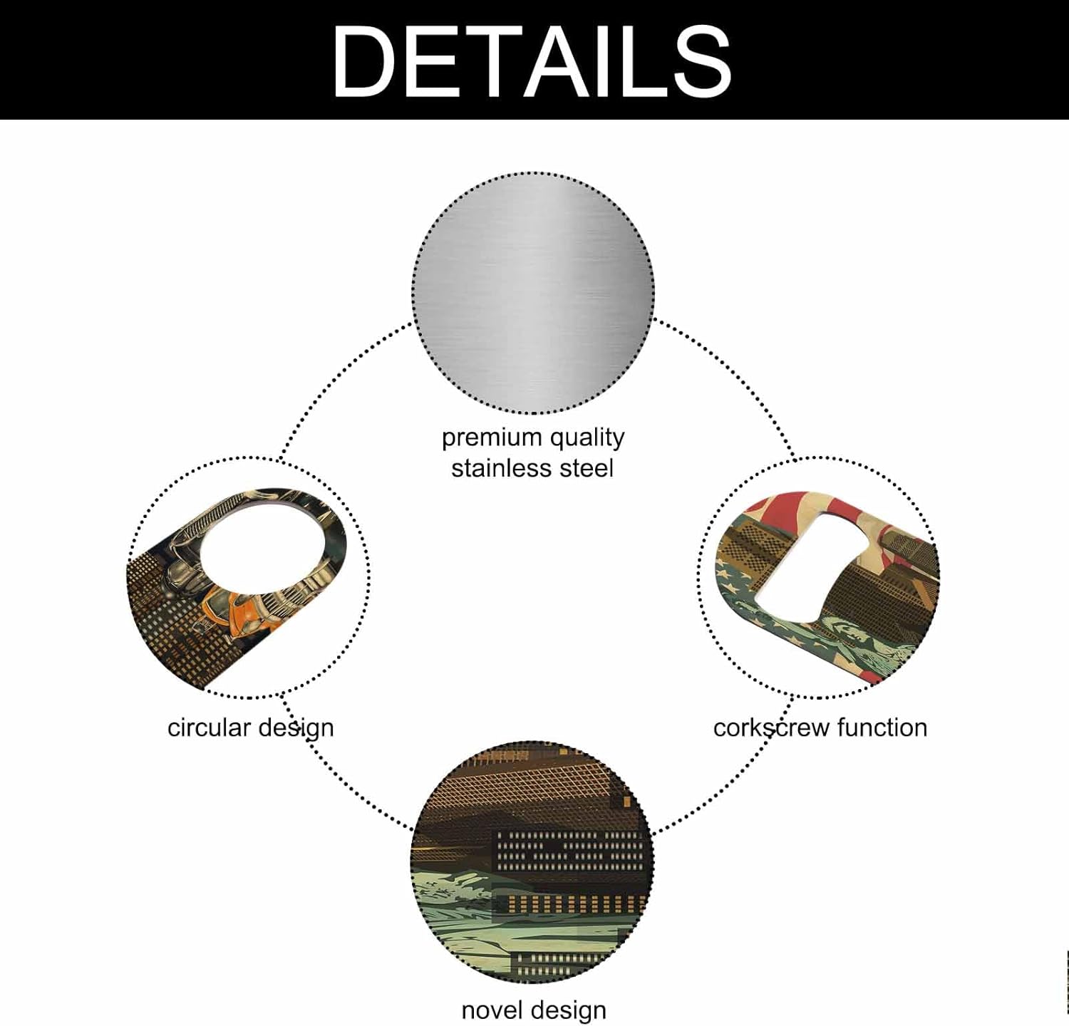 - Unique Design: Beer bottle opener is printed with double-sided printing, with multiple and interesting styles, no longer monotonous. The bottle opener is lightweight and portable, and has a round hole at the bottom of the handle for hanging, making it easy to store.