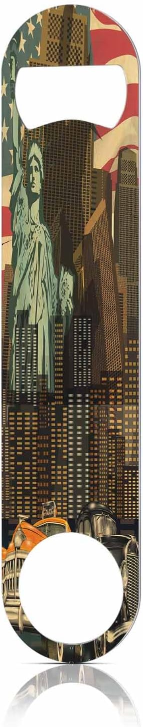 Vintage America Flag Stainless Steel Bottle Opener Auto Skyscraper Travel Freedom Landmark Flat Beer Bottle Opener Keychain for Home Kitchen Bar Restaurant Party Birthday Gift