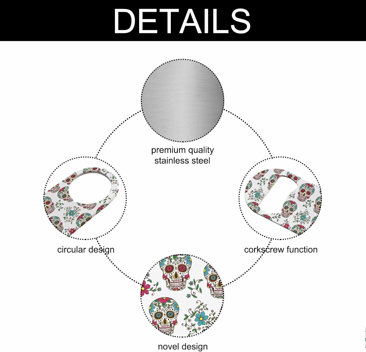 - Premium Material: Our sugar skull bottle opener is made of stainless steel, sturdy for long-term use.