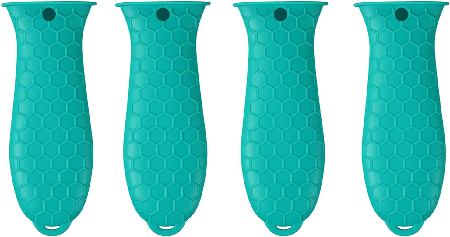 4 Pcs Silicone Hot Handle Holder, Non-Slip Potholder for Cast Iron Skillets & Frying Pans, Heat Resistant Sleeve Grip Cover, Metal Cookware Handle, Lake Blue