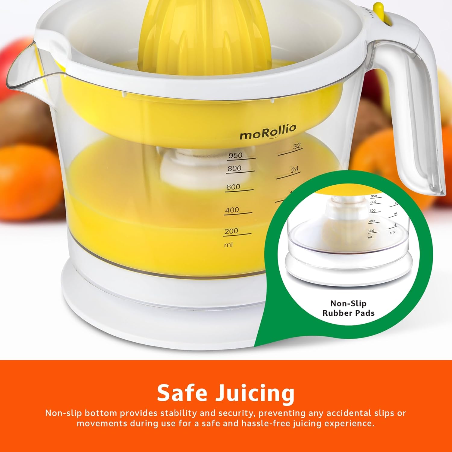 - SAFER JUICING: The non-slip feet keep this citrus juicer securely in place on your counter for a safe juice extracting experience, and the electric cord conveniently wraps around the base.