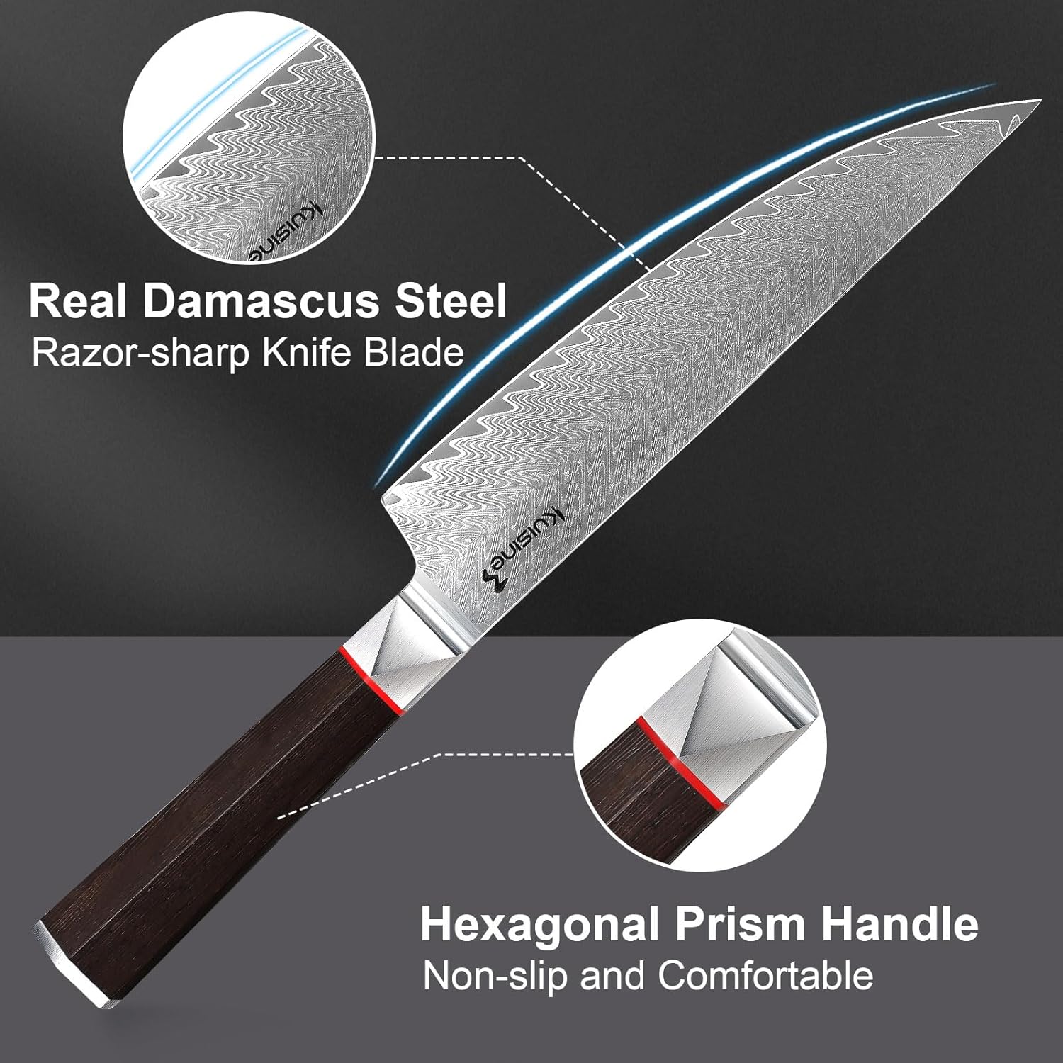 - Keep Ultra Sharp Stay Longer: Kuisine damascus knife set is made by modern and traditional technologies and forged by advanced processes, this kitchen utensils set is super shparp by quench and polish, which make the blade sharper and stay longer, giving you a splendid cooking experience.