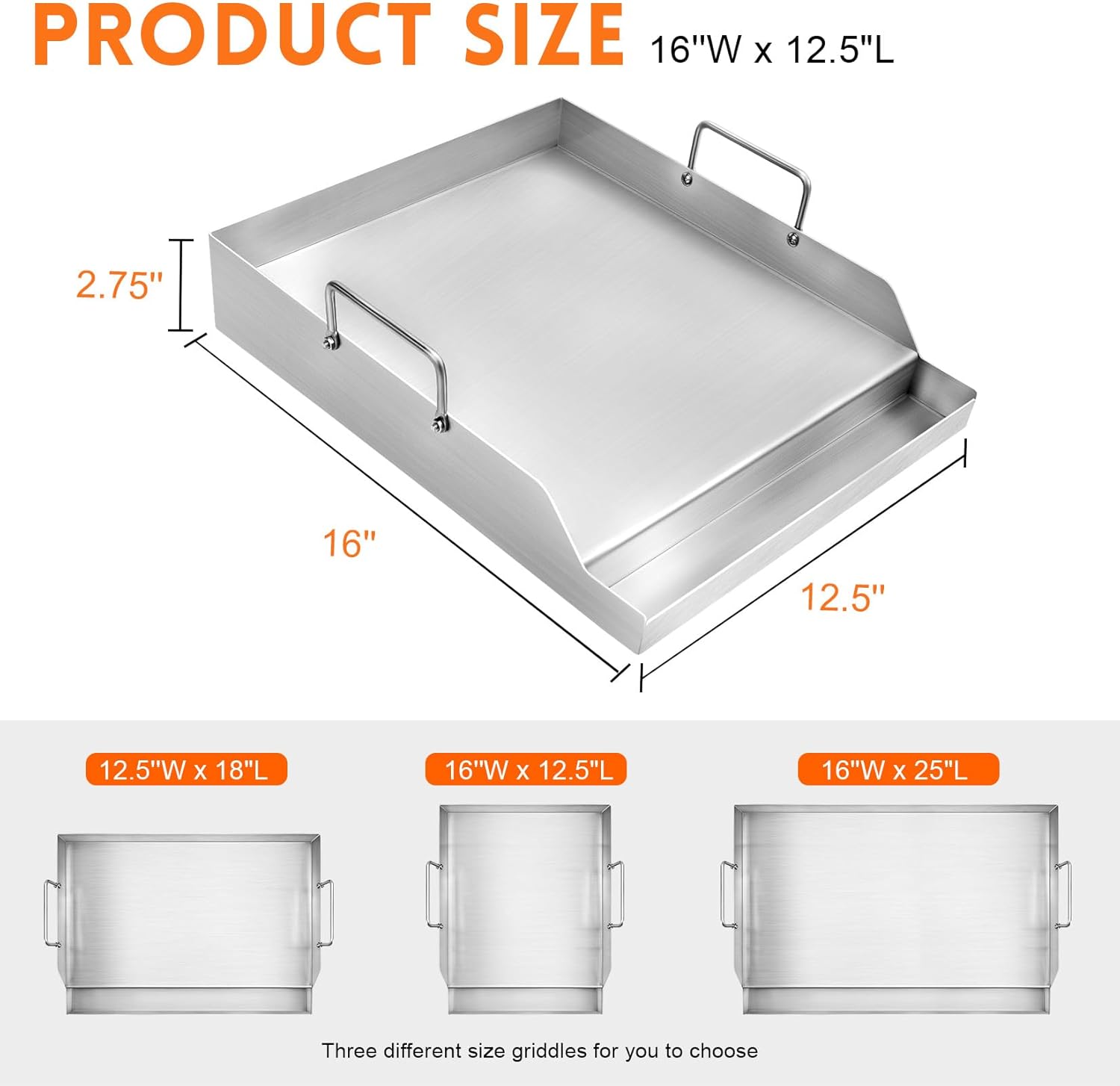 GGC 16" x 12.5" Flat Top Griddle Plate for Gas Grills, Stainless Steel Universal Griddle for Gas Stoves and Camping Stoves, Nonstick Cooking Griddle for Charcoal, Tailgating, Parties