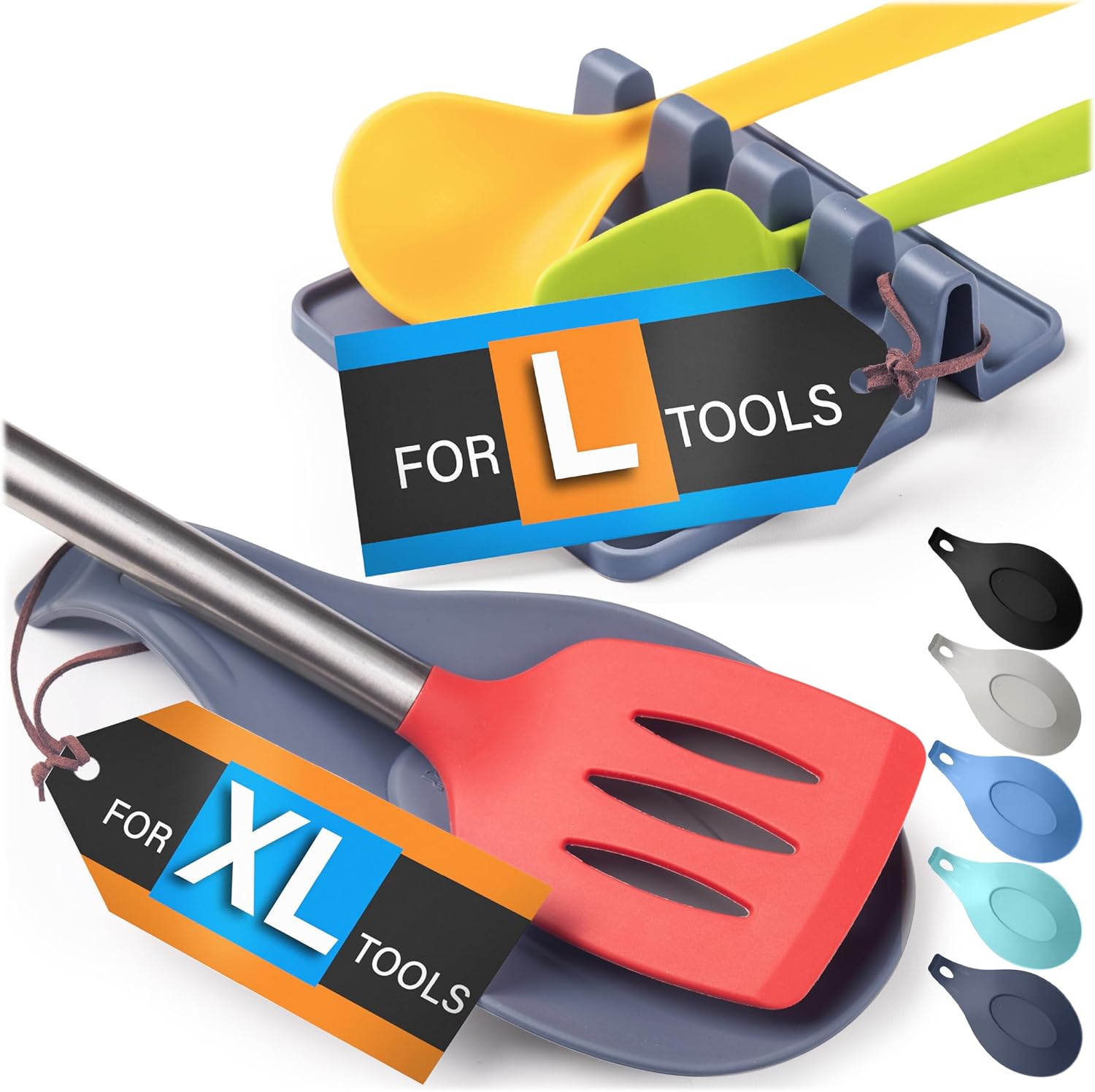 - ENJOY A MESS-FREE COUNTERTOP AND STOVETOP – Eliminate clutter with our Dual utensil rest for kitchen counter set. The set includes 2 flexible rests: ONE LARGE REST that holds 2 “XL” utensils at a time and ONE SLEEK, COMPACT option that holds up to 4 spatulas.