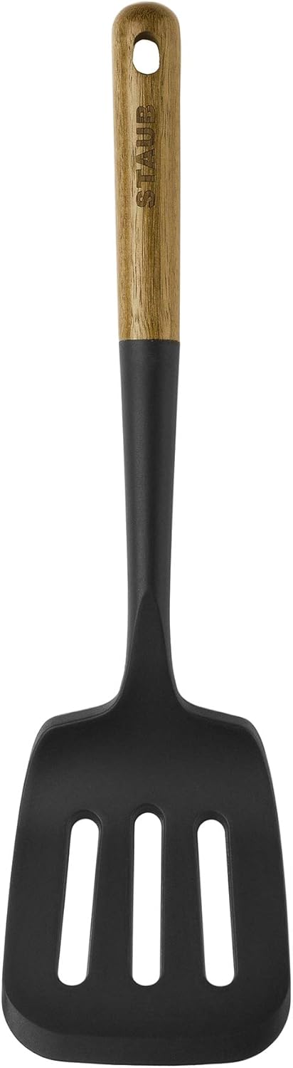 STAUB Cast Iron Set 4-pc, Stackable Space-Saving Cookware Set, Dutch Oven, Skillet, Grill Pan & Silicone Spatula Turner, Perfectly Angled for Lifting Pancakes, Sandwiches