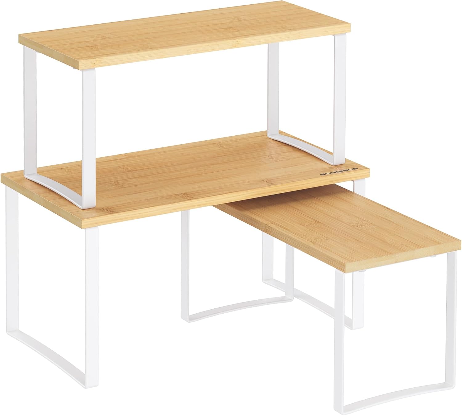 SONGMICS Cabinet Organizer Shelf, Set of 3 Kitchen Counter Shelves, Kitchen Storage, Spice Rack, Stackable, Expandable, Cloud White and Natural Beige UKCS014W01