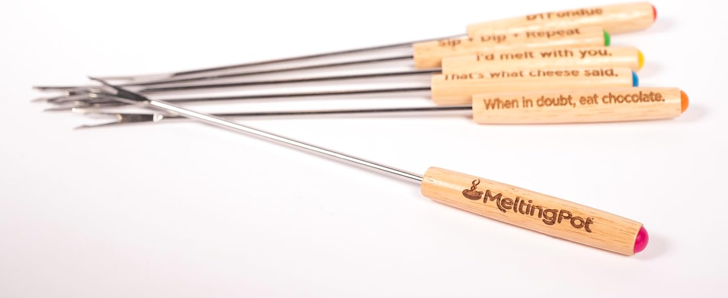 The Official Melting Pot 8-piece Fondue Set -2 Qt. Stainless Steel Pot with liner and 6 Fondue Forks for Cheese, Chocolate & Broth.