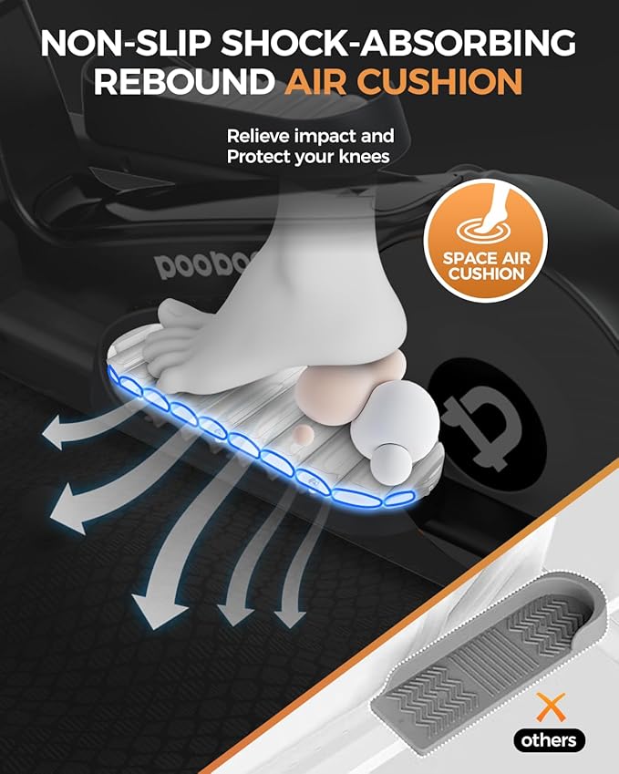 • Warm Tips: The pooboo elliptical machine designed 80% pre-assembled. Say goodbye to the traditional complicated setup process. Guided by the manual or assembly video, you can easily finish it within 30 minutes. Besides, when not in use, it can be quickly and easily folded up.