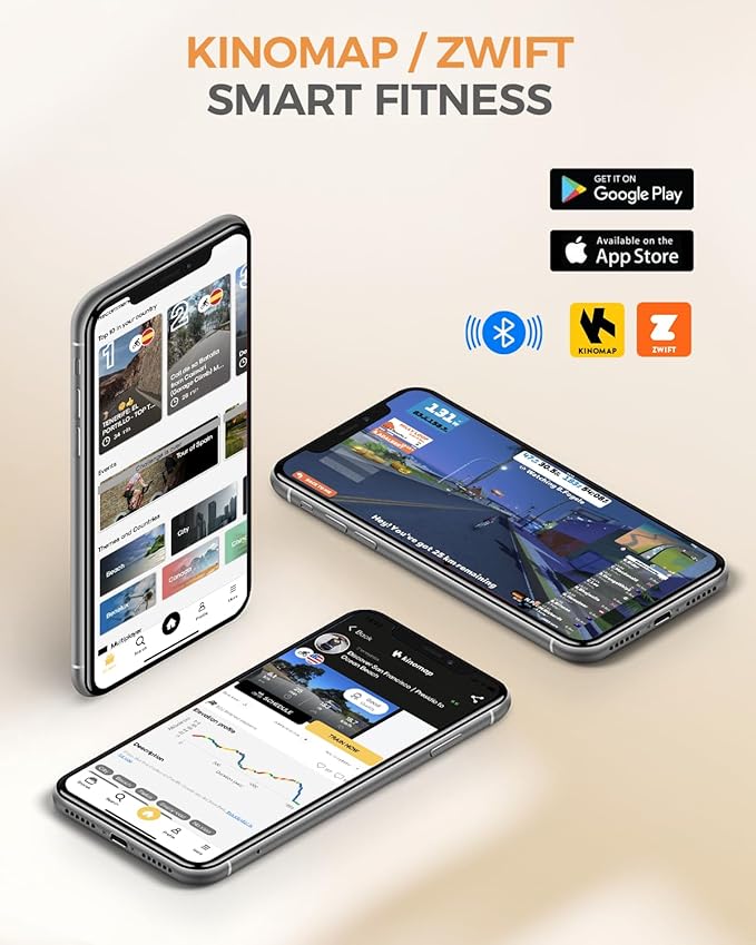 • 【Connection to Fitness APP】Built-In Sensor, compatible with KINOMAP, Z APP. With KINOMAP/Z Smart Fitness APP, you can record and view training data and share fitness data on social media. Make your exercise more fun.