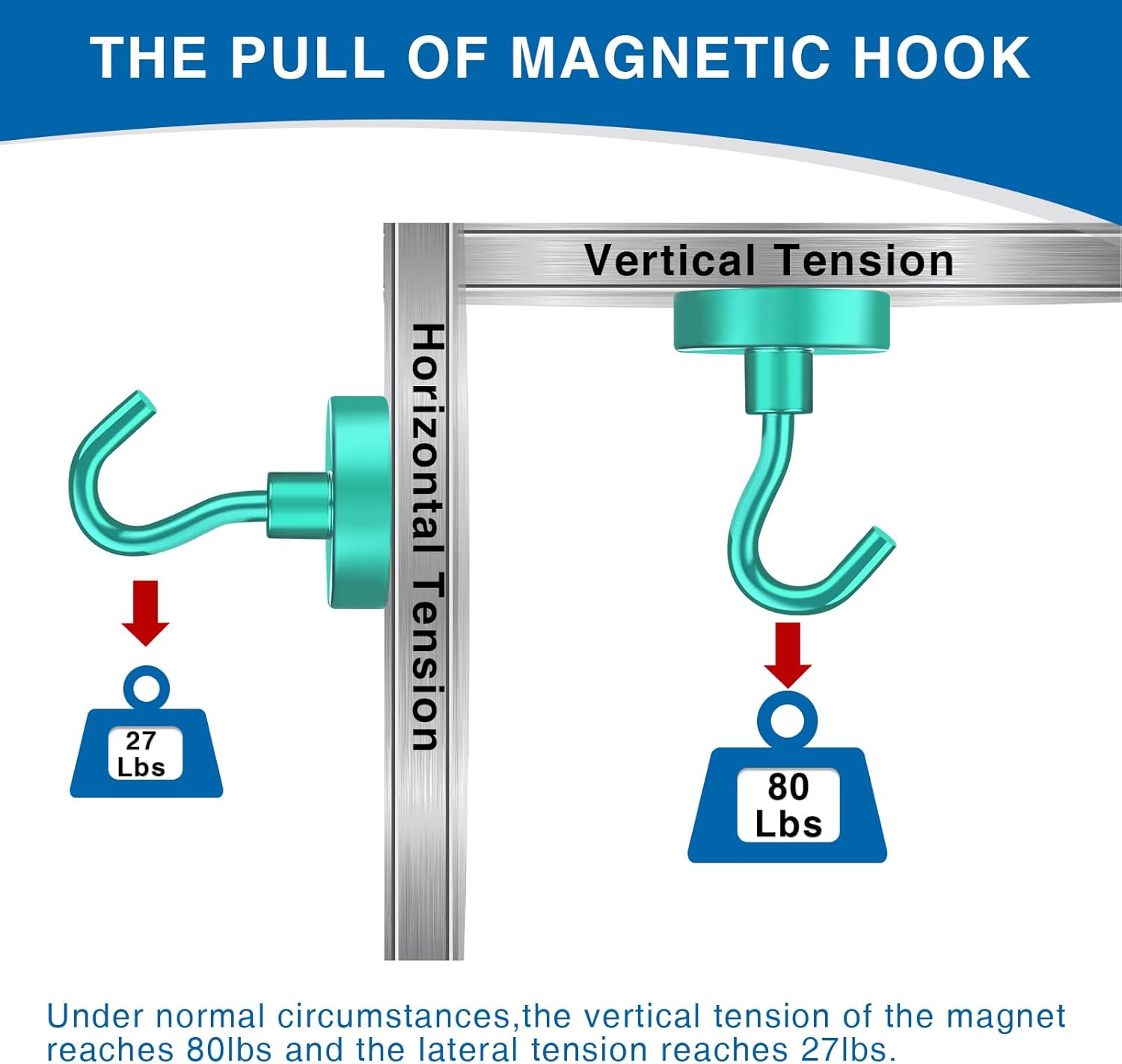 - 【MAGNET HOOKS】With our magnetic hooks, you can get over 80LBS of pulling force vertically and 27LBS horizontally. These colorful metal magnetic hooks for cruise essentials are very sturdy and perfect for hanging the items you need to make your life easier.