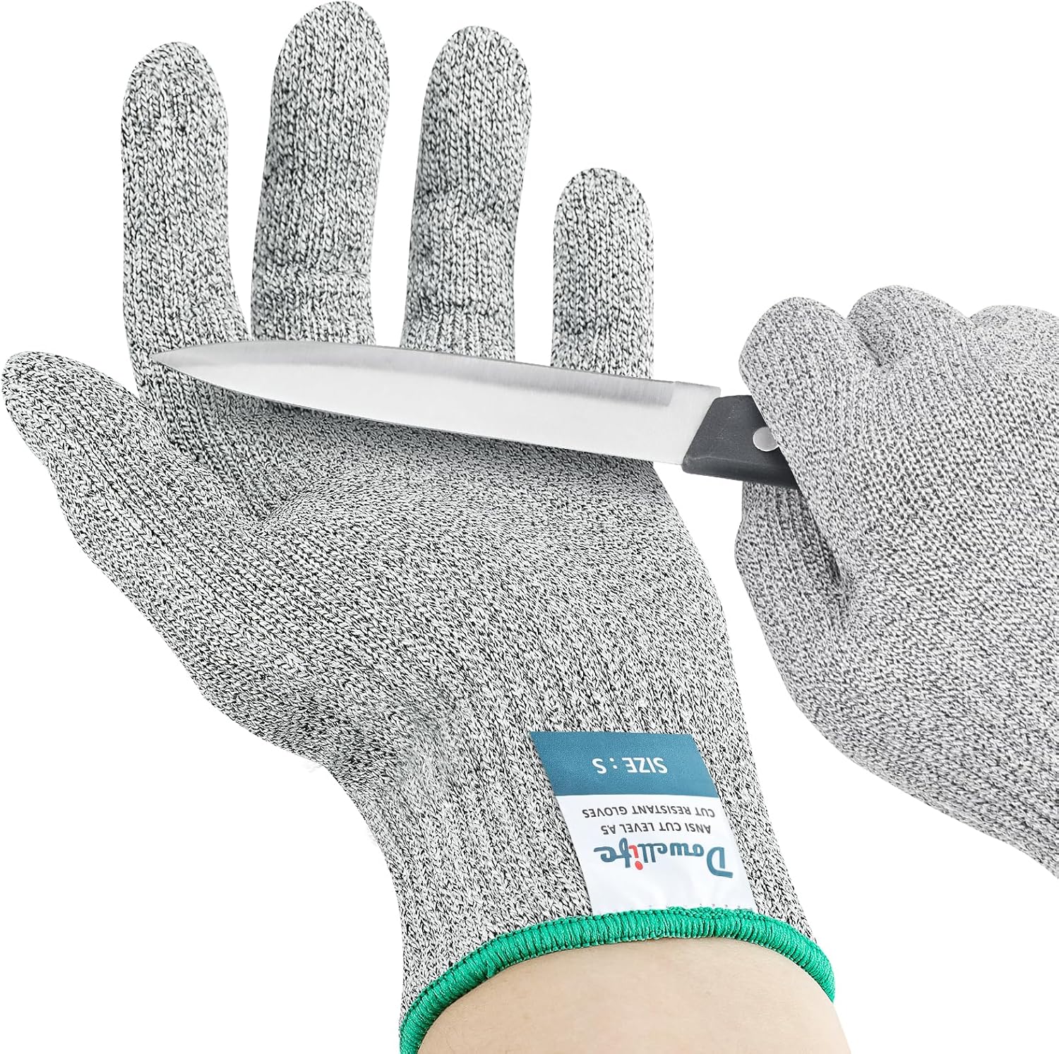 Dowellife Soft Level 9 Cut Resistant Gloves Food Grade, Steel Wire Mixed Kitchen Safety Gloves for Chef Oyster Shucking Mandoline Knife Butcher Meat Cutting Carving (Medium)