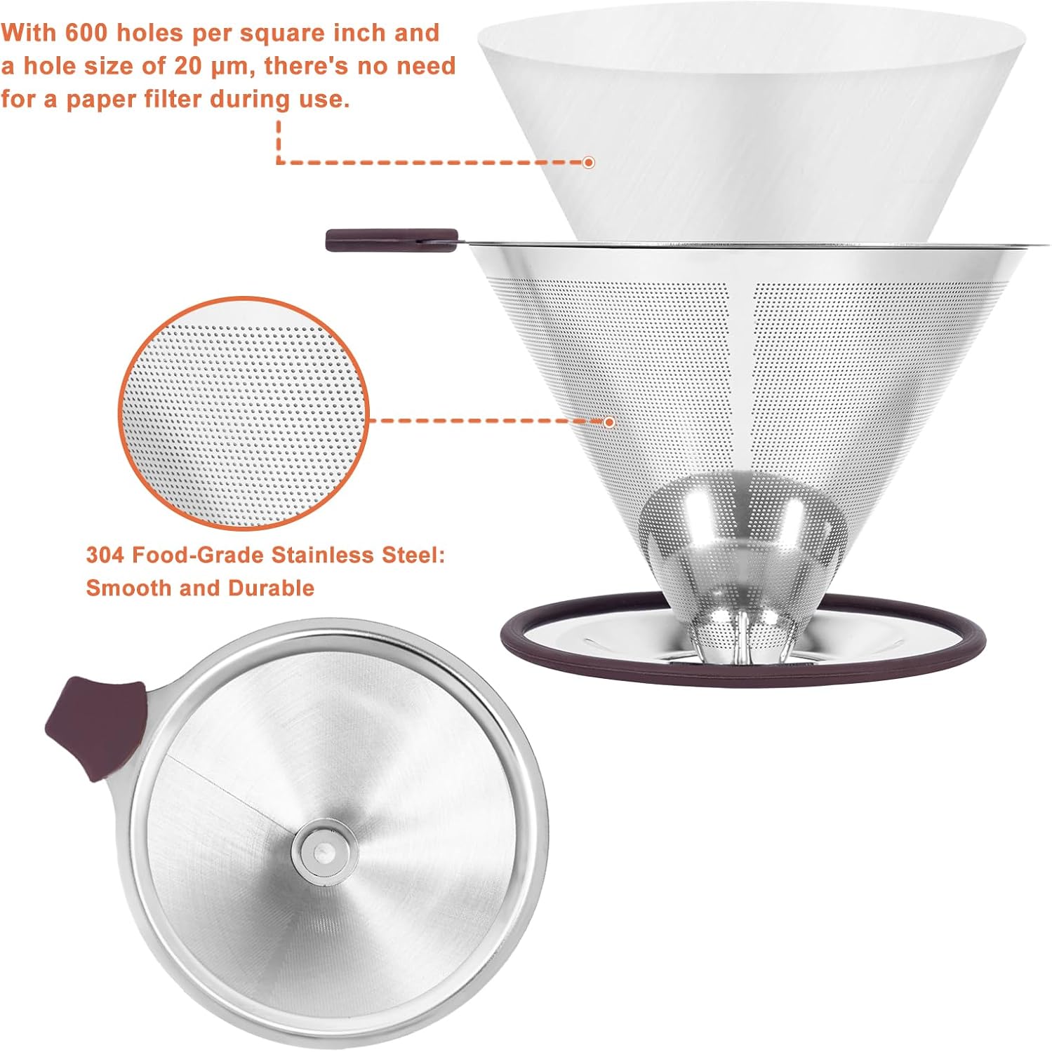 - ''Premium 304-Grade Stainless Steel '' Crafted from top-tier 304-grade stainless steel, our coffee dripper guarantees exceptional quality and durability. Renowned for its corrosion resistance and ability to withstand high heat, this material ensures a reliable coffee brewing experience over time.