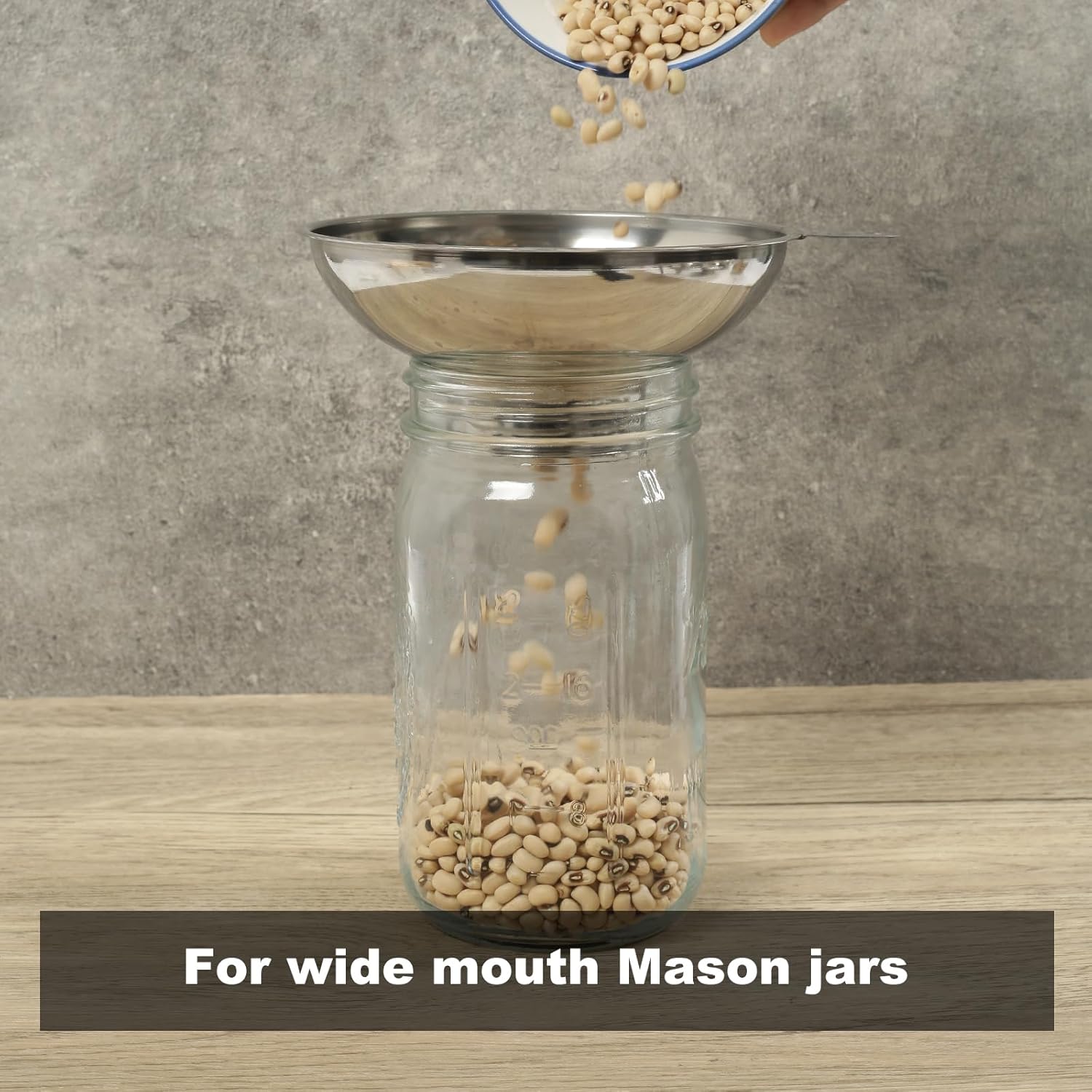 - MULTIPURPOSE FUNNEL: Our canning funnel is perfect for wide mouth Mason jars, fresh fruit jars, delicious coffee, solid beans, filling oil or liquid bottles, etc. 2.78 inches wide mouth is perfect for wide mouth Mason jars.