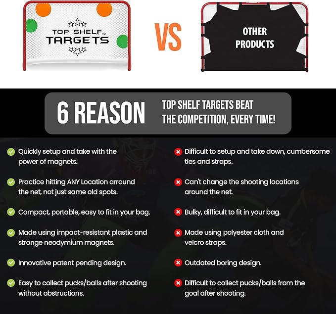 • Easy Magnetic Target Attachment; Our top-notch lacrosse training target has high-powered magnets for easy attachment to lacrosse nets, street hockey nets, ice hockey nets, or sturdy metal frames, so you can improve your skills on any setup