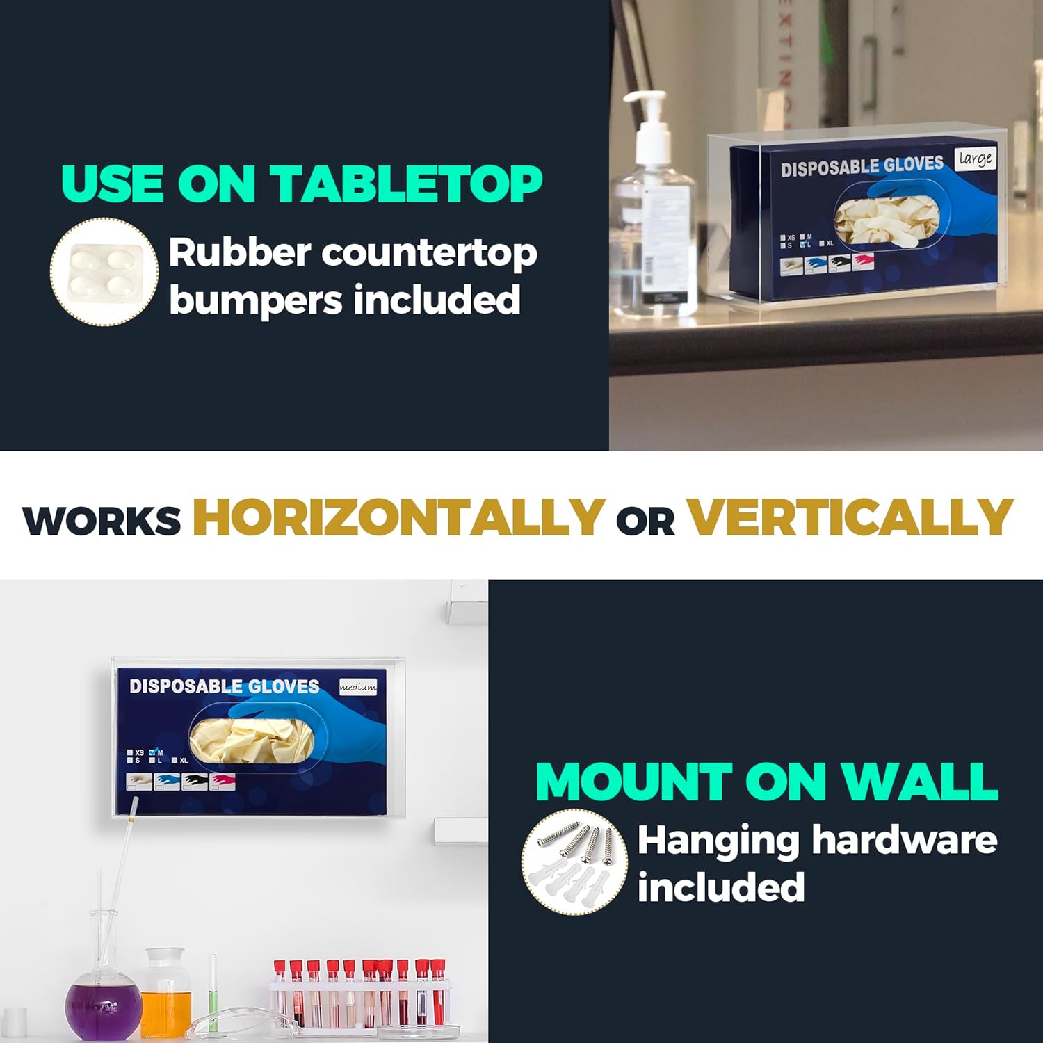 - For Home or Commercial Use - Be it for a hospital, restaurant, or home, our glove wall mount glove rack will keep any space organized! Click 'Add to Cart' on our exam glove holder for wall or tabletop!