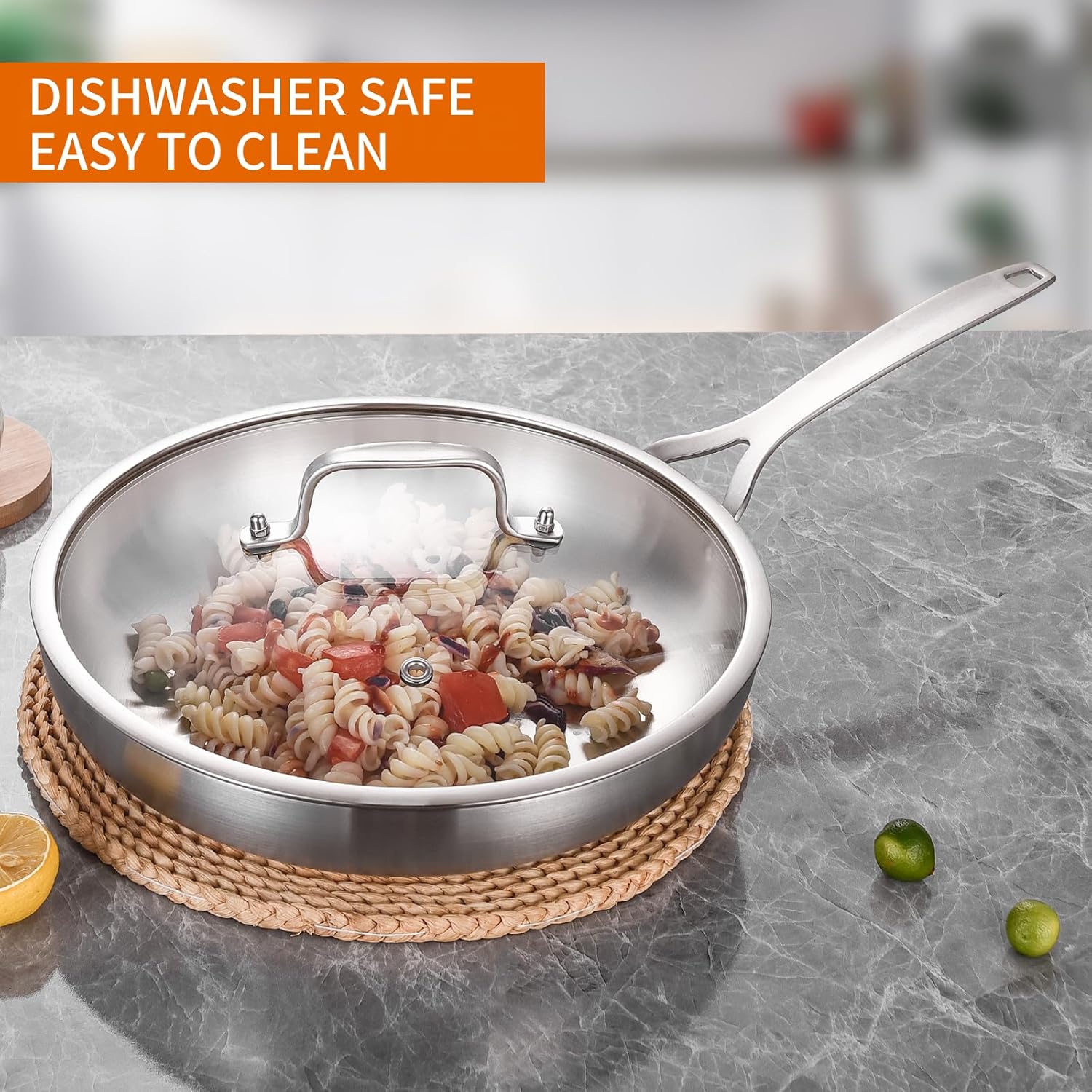 - 【Family Approved】 Highly polished 18/8 Food Grade cooking surface won’t react with food. Oven and broiler safe up to 500˚F. Fully-clad, 3-layer metal construction delivers performance and durability for years to come