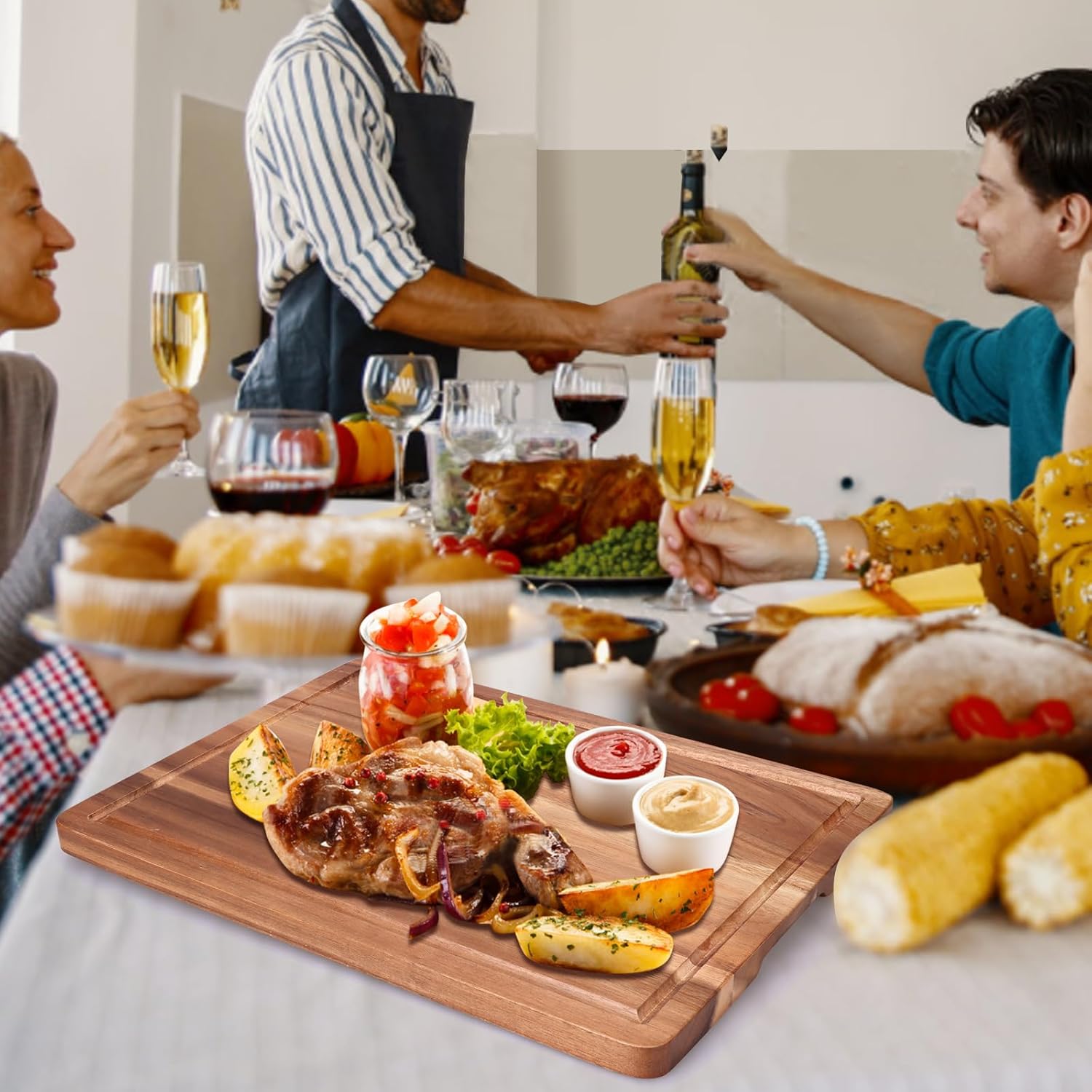 Acacia Wood Cutting Boards for Kitchen, Wooden Chopping Board with Side Handle and Juice Groove, 15" X 11" Carving Board, Butcher Block, Cheese Charcuterie Boards for Meat, Fruit, Steak