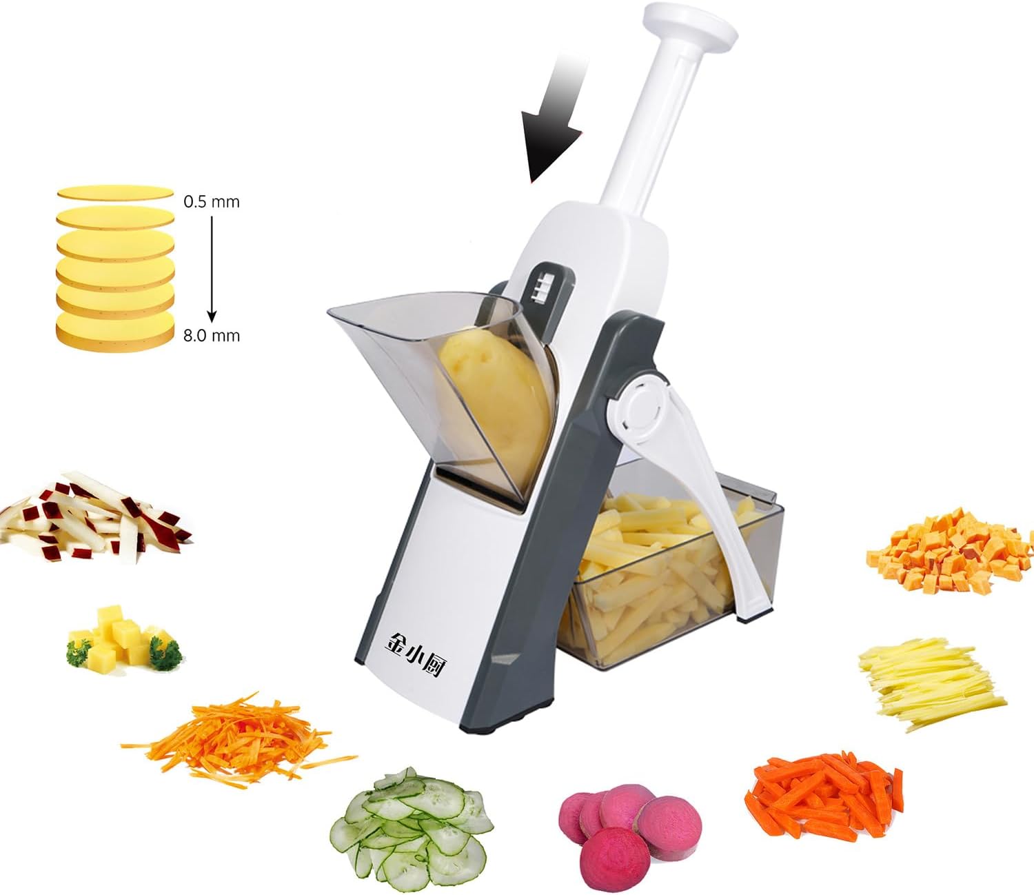 ShanSon Safe Mandoline Slicer,French Fry Cutter,Multifunctional Vegetable Chopper,Mandoline Potato Slicer with 25+ Presets & Thickness Adjuster, Chopping Artifact for Kitchen Meal Prep,Gray