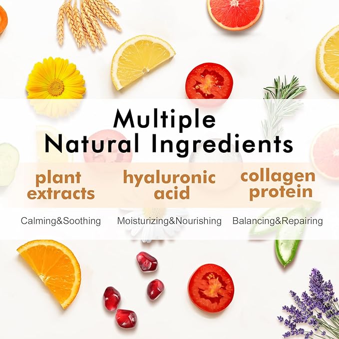 • 【56 Pack Face Mask Gift Set】Our facial sheet masks skincare with 14 natural ingredients like aloe,pomegranate,honey,tomato,ginseng,lavender,sake,oats,grapefruit,chamomile,hyaluronic acid,vitamin C,tea tree,shea butter.Rich collagen essence can be quickly absorbed by the skin,the skin will feel smoother and younger.